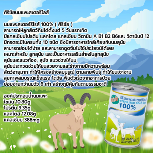 ศิริชัย นมแพะสเตอริไลส์ นมทดแทนสำหรับสัตว์เลี้ยง <400ml>