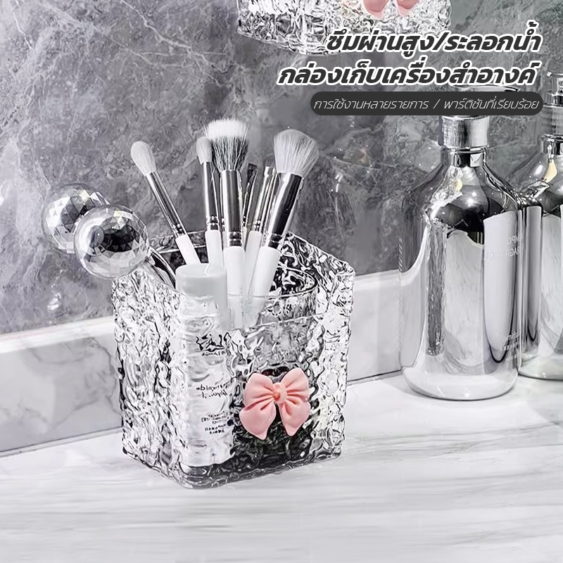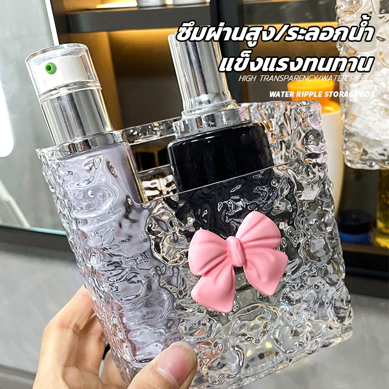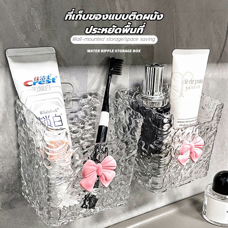 กล่องใส่ทิชชู่ ติดผนัง กล่องใส่สกินแคร์ เก็บของใส่แปรงสีฟัน ไม่ต้องเจาะรู โบว์ประดับ ชั้นเก็บของตะชั้นวา กล่องอะครีลิค