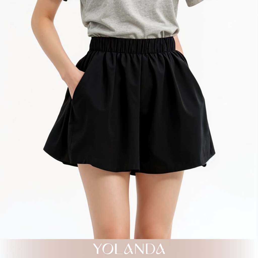 Yolanda กางเกงขาสั้น กางเกงบอนลูน สำหรับผู้หญิง เอวยางยืด มีกระเป๋า FF1104