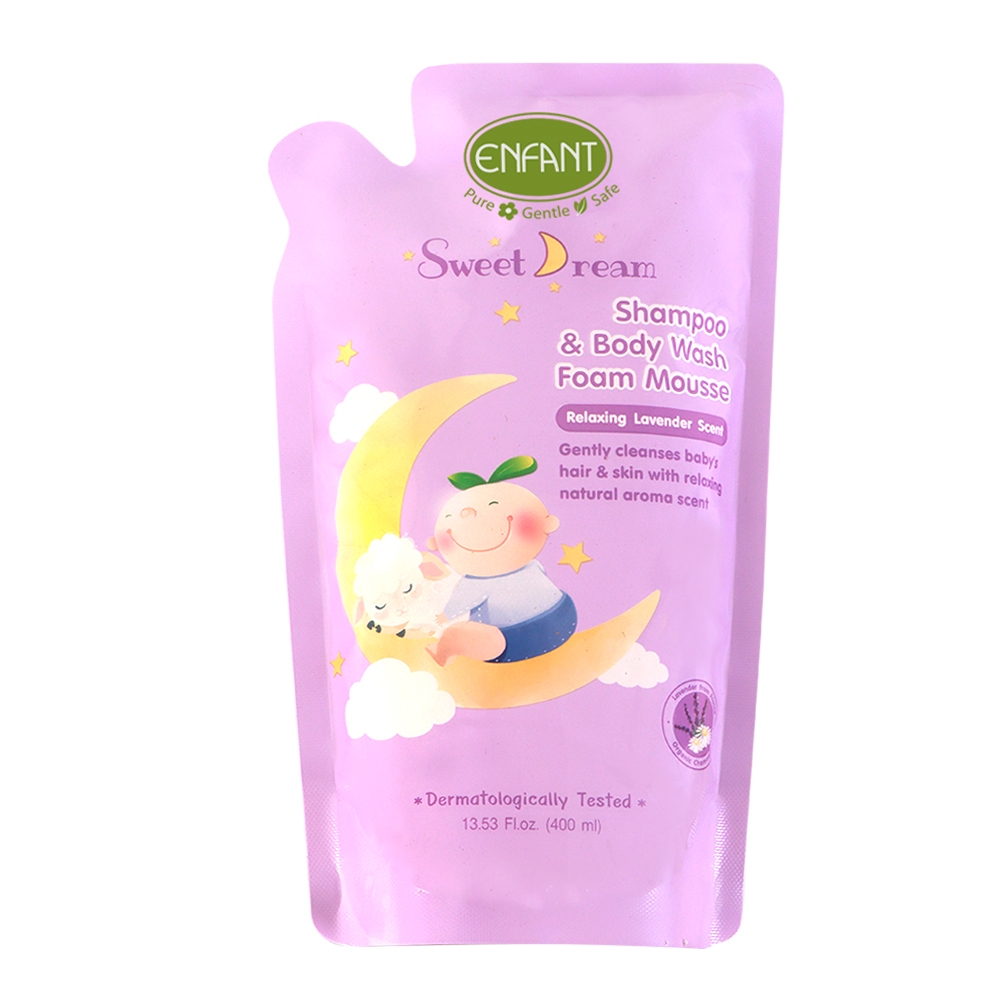 Enfant (อองฟองต์) อาบสระปั๊มโฟมเนื้อมูส กลิ่นลาเวนเดอร์ ขนาด 400มล. รีฟิว (ชนิดถุง) + รีฟิว (ชนิดถุง)