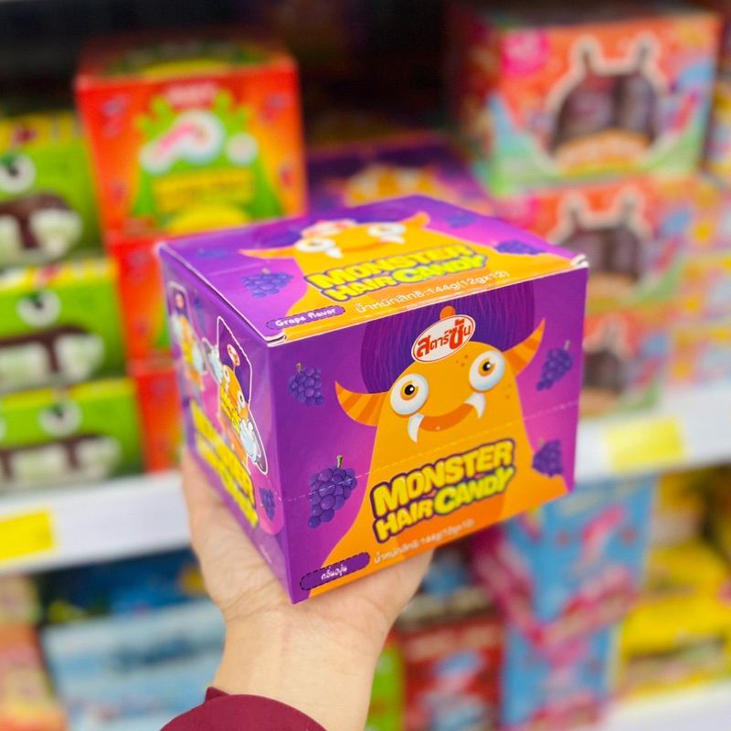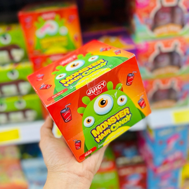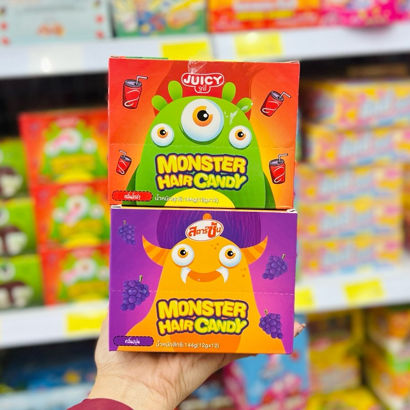 [1กล่อง 12ชิ้น] Juicy สตาร์ซัน Monster Hair Candy ลูกอมกลิ่นโคล่าและกลิ่นองุ่น 144g.