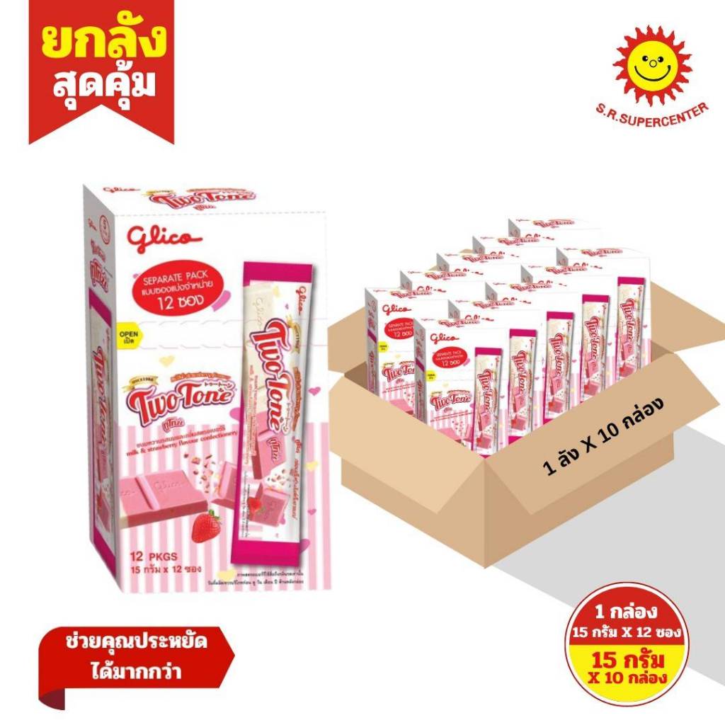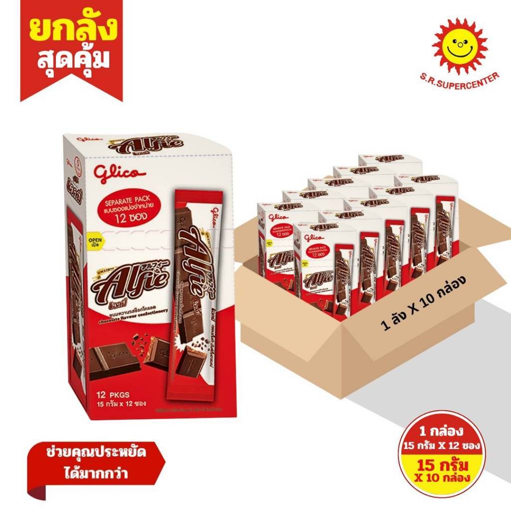 [ ยกลัง ] กูลิโกะ แอลฟี่ ช็อกโกแลต, ทูโทน ขนาด 15 กรัม ( ยกลัง 10 กล่อง)