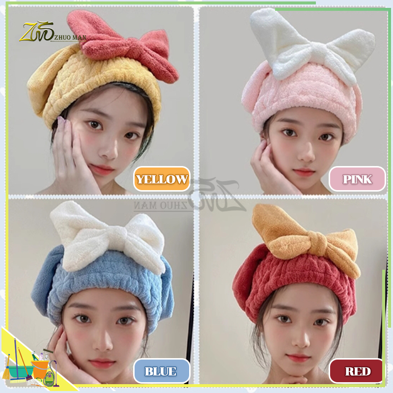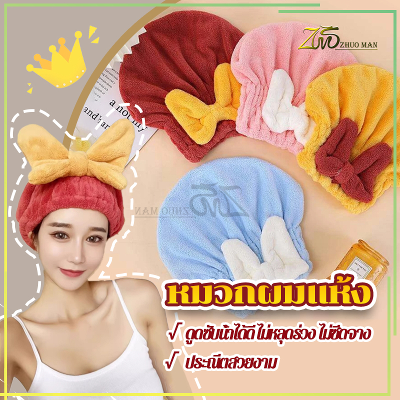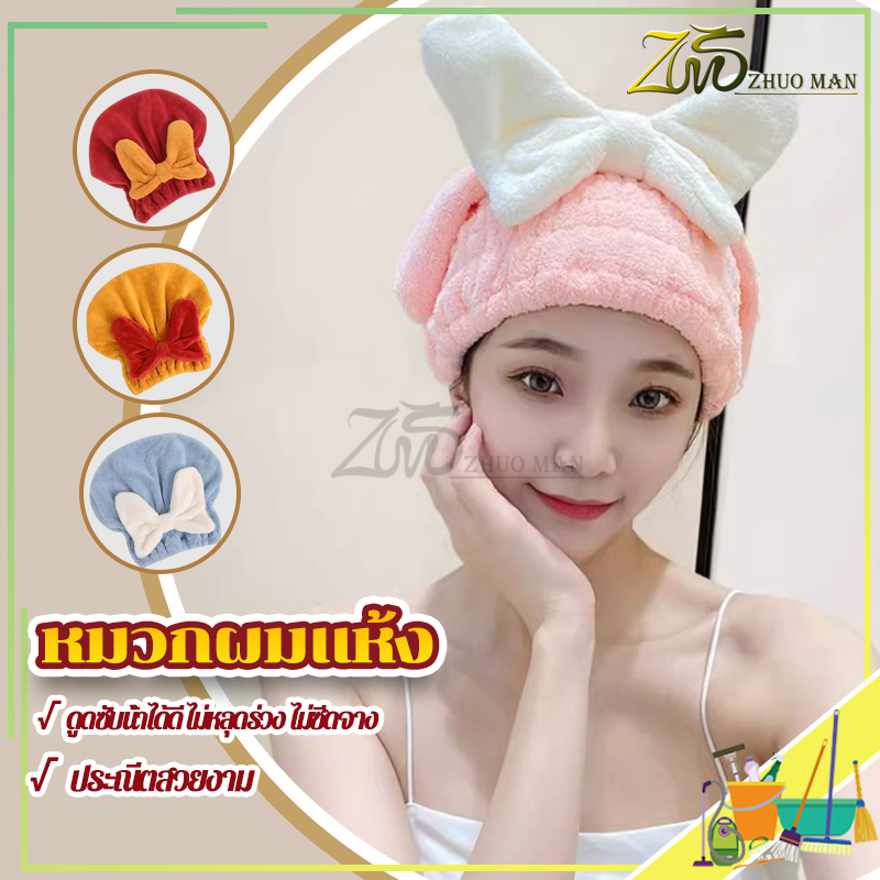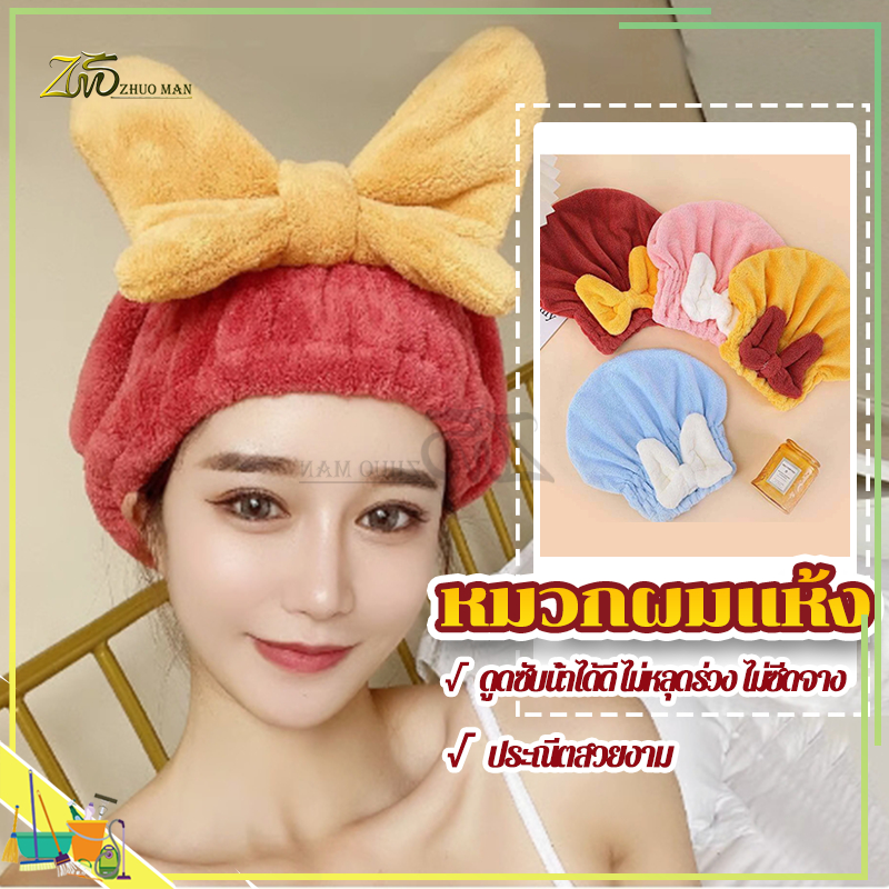 หมวกผมแห้ง ผ้าเช็ดผมนาโน ผ้าคลุมผมแห้งไว หมวกซับน้ำ รูปโบว์ น่ารัก นุ่มและเป็นมิตรต่อผิวหนัง ดูดซับน้ำได้ดี ไม่ซีดจาง