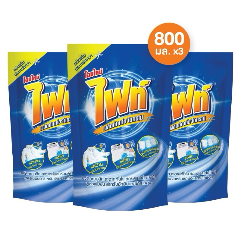 แพ็ค 3 ถุง Fight ผลิตภัณฑ์ขจัดคราบ ไฟท์ สูตรขจัดคราบลึก ชนิดถุงเติม 800 มล.
