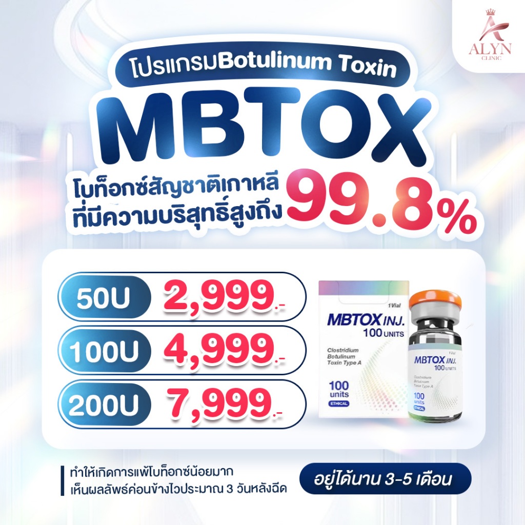 โบท็อกซ์ MBTOX โบท็อกซ์สัญชาติเกาหลีที่มีความบริสุทธิ์สูงถึง 99.8% Alyn clinic อลินคลินิค