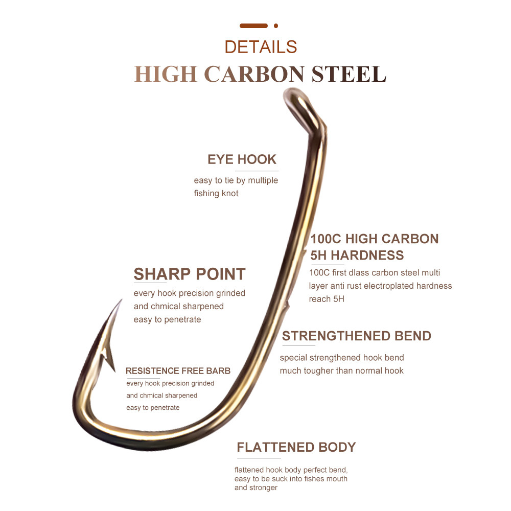 Ftk 92676 ตะขอตกปลา Ringed เหล็กคาร์บอนสูง Barbed Hook เครื่องมือตกปลา 100 ชิ้นอุปกรณ์ตกปลาทองแดงสี