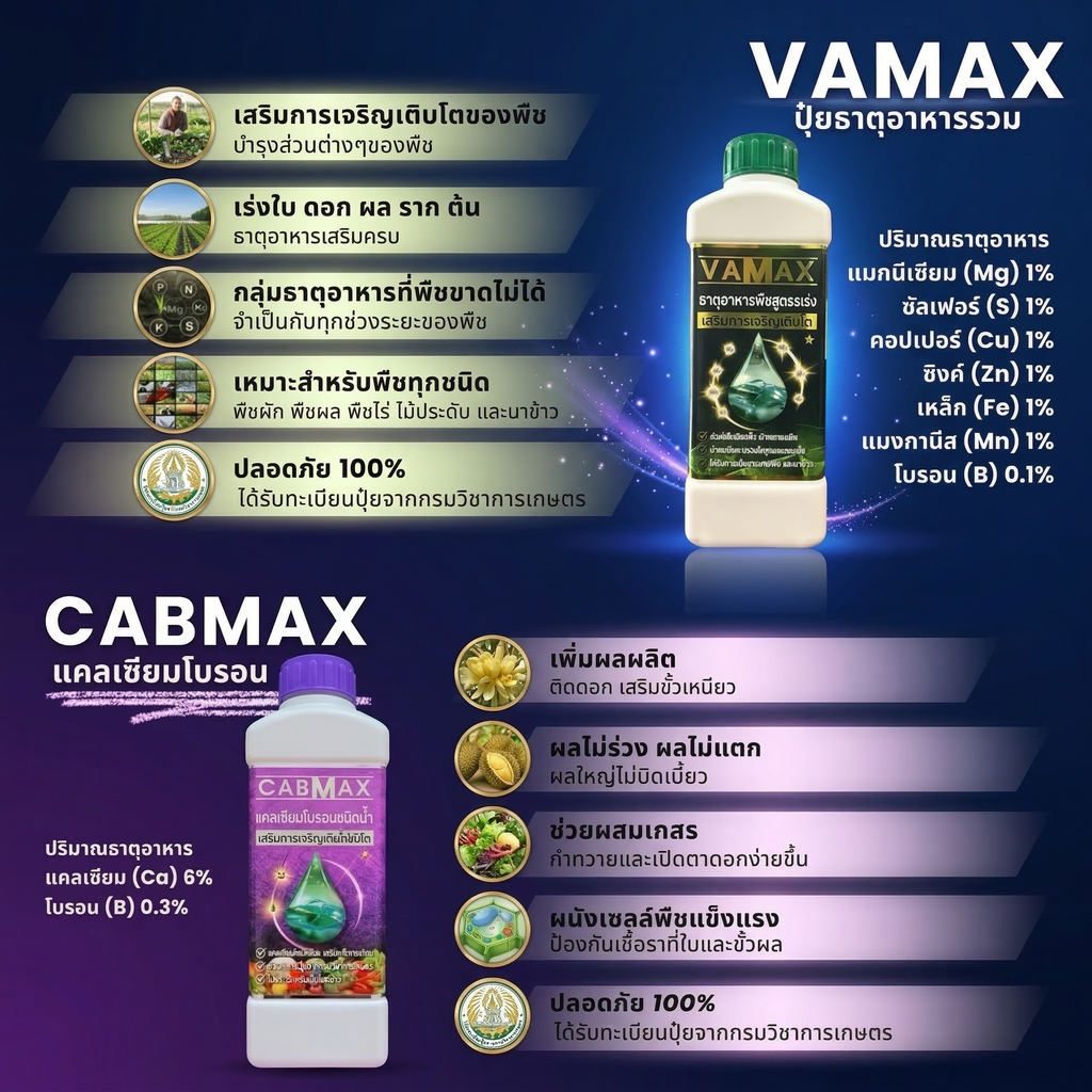CABMAX+VAMAX ชุดยกลัง แถมเสื้อปุ๋ย แคลเซียมโบรอนเข้มข้ม แถม ปุ๋ยธาตุรวม [ชุด 6แถม6]