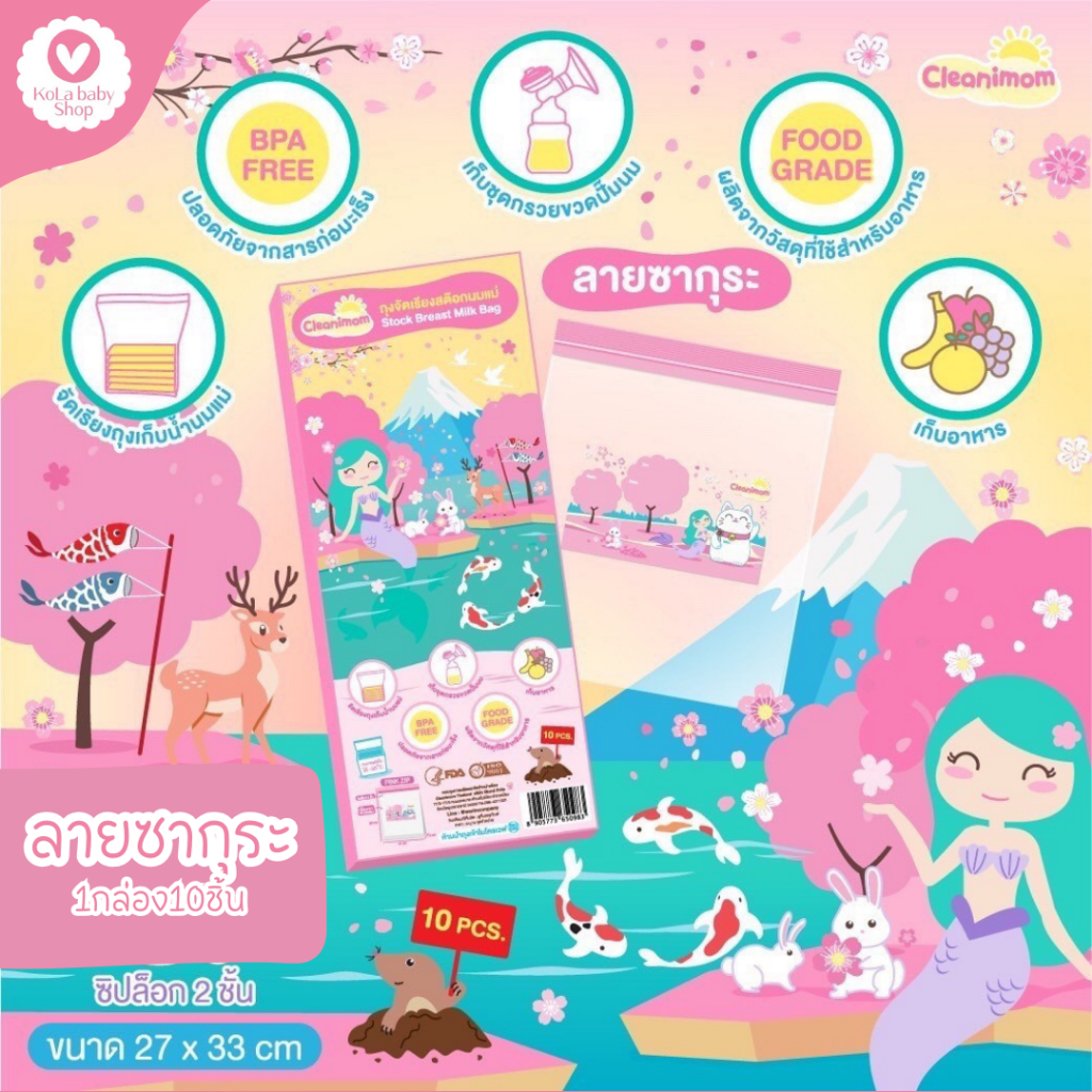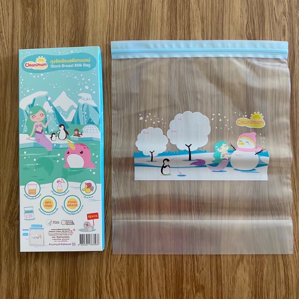 ถุงจัดเรียงสต๊อกนมแม่ Cleanimom ลดกลิ่นหืน ลายน่ารัก [1 กล่อง มี 10 ใบ]