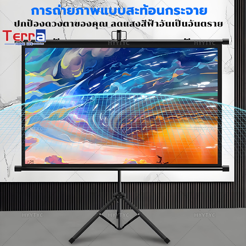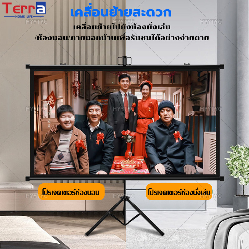 Terra Home Life จอโปรเจคเตอร์ 4K แบบตั้งพื้น แขวนผนัง ไม่มีการเจาะรู Projector Screen 60/84/100นิ้ว ไม่มีการติดตั้ง