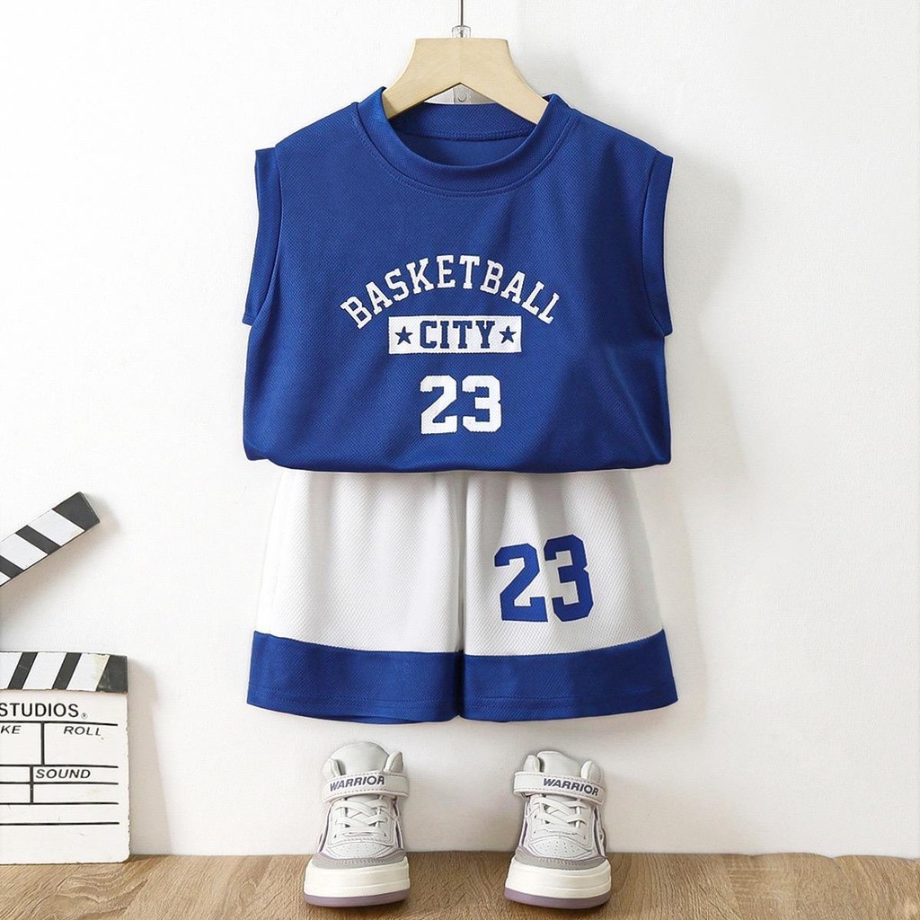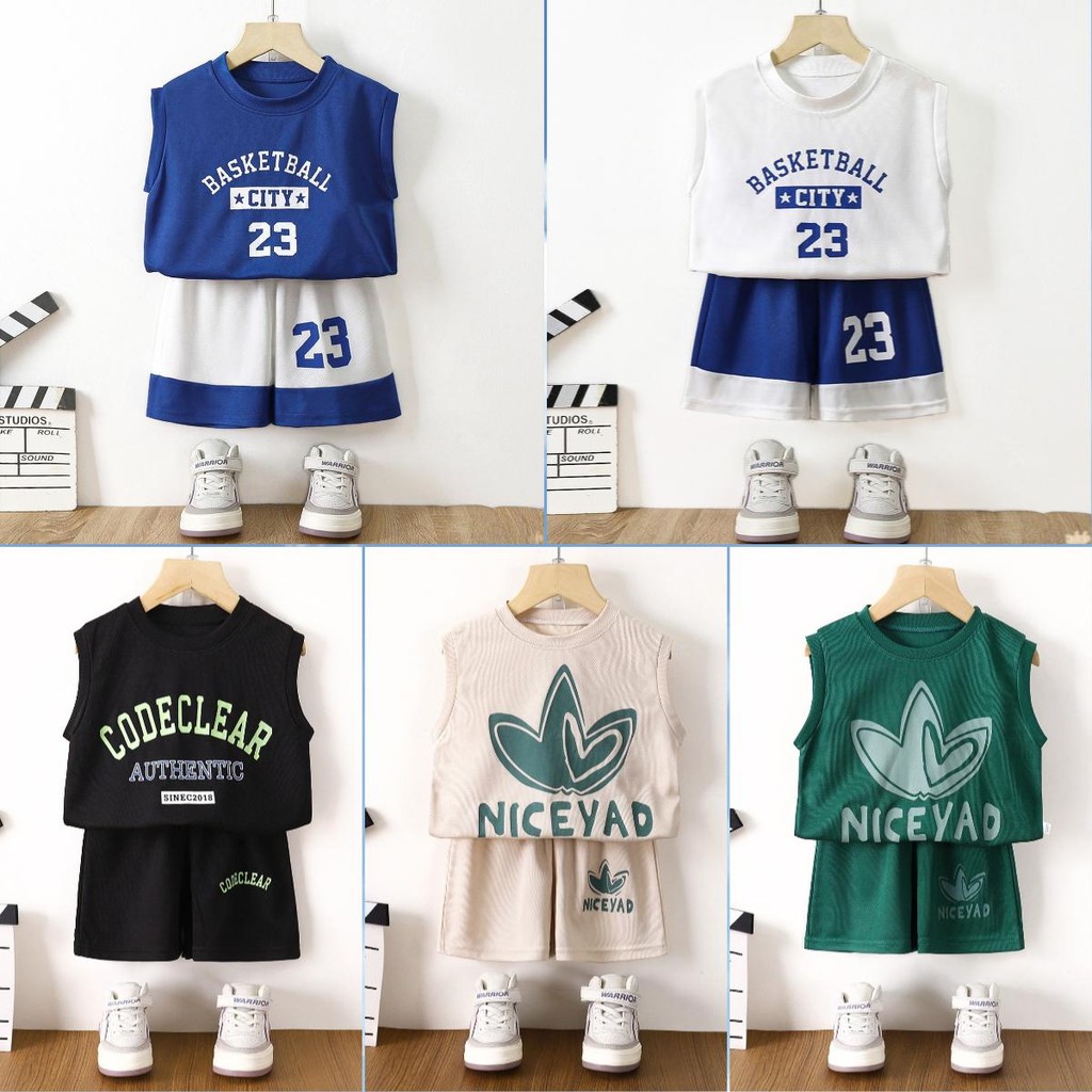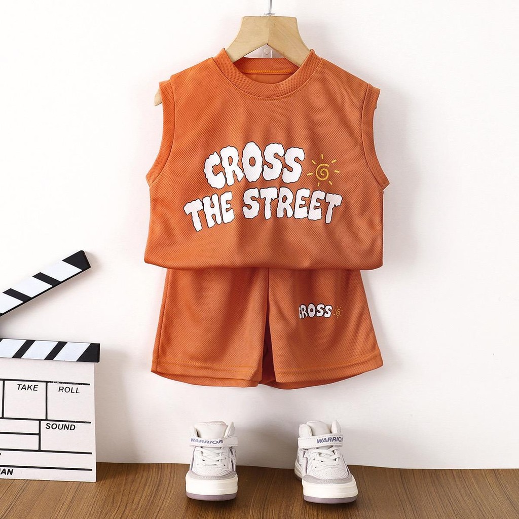 สินค้าใหม่ประจำฤดูร้อน เสื้อแขนกุดเด็ก ชุดกีฬาเด็ก เซทเสือ+กางเกงขาสัน ใส่สบายๆ เหมาะสำหรับ2-8ปี 【DA-Q】