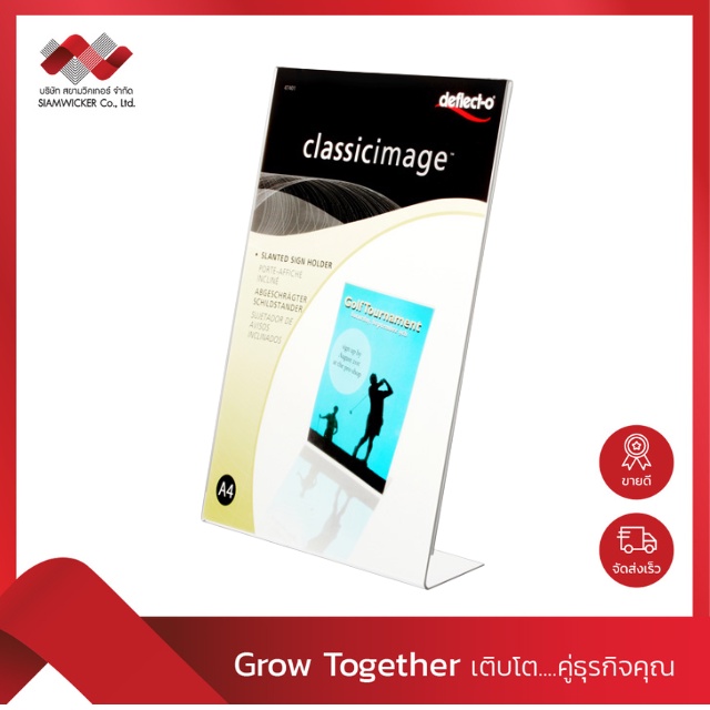 ป้ายอะคริลิค ป้ายใส่โบรชัวร์ ป้ายตั้งโต๊ะ ป้ายเอกสาร ป้ายใส ขนาด A4 แนวตั้ง L-Shape (รุ่น 47401-TLS)