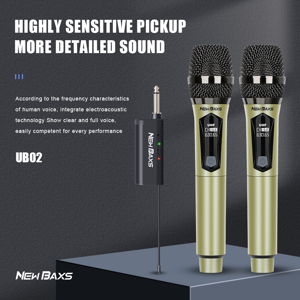 NEW BAXS UB01/UB02 ไมโครโฟนไร้สาย 2 ไมโครโฟนแบบชาร์จไฟได้รับระยะทาง 50M UHF FM ไม่รบกวน KTV