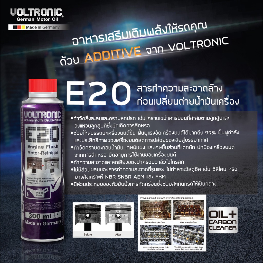 VOLTRONIC E20 สารทำความสะอาดเครื่องยนต์ก่อนเปลี่ยนถ่ายน้ำมันเครื่อง ENGINE FLUSH