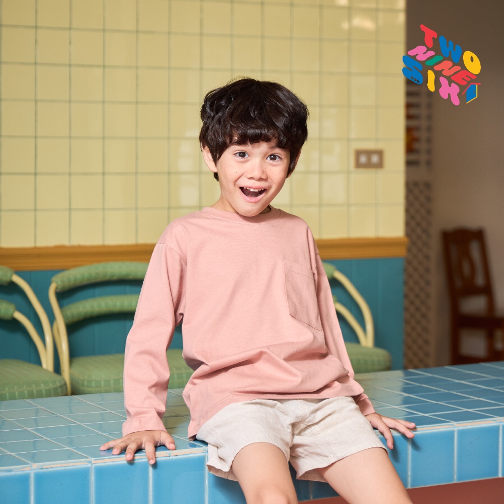 Kids T-Shirts เสื้อยืดเด็ก แขนยาว เนื้อผ้านุ่ม Cotton 100 สัมผัสเบาสบาย_สีชมพู