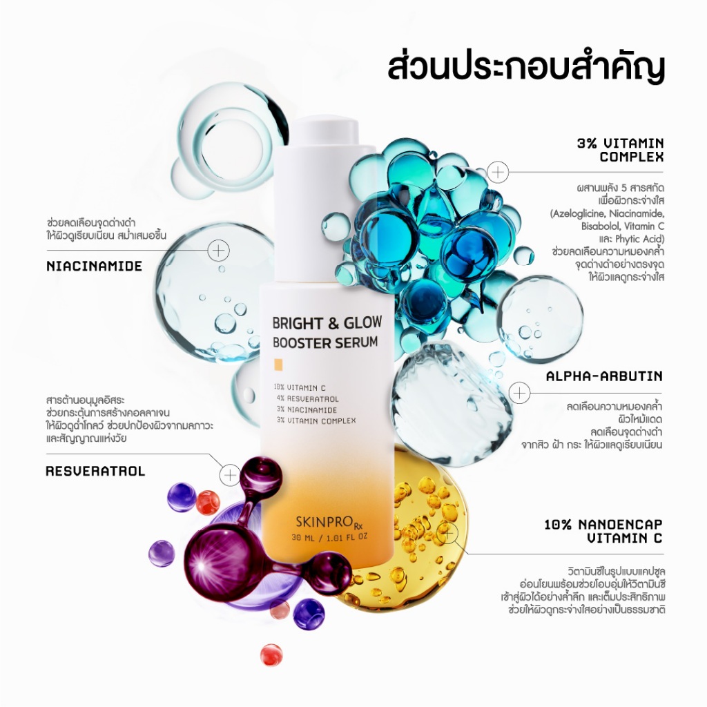 SKINPRO Rx Bright & Glow Booster Serum เซรั่มสูตรบำรุงผิวกระจ่างใส 30 ml.