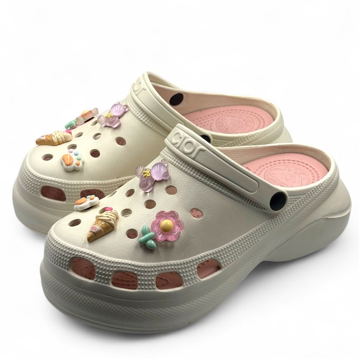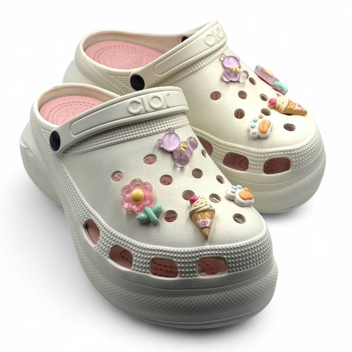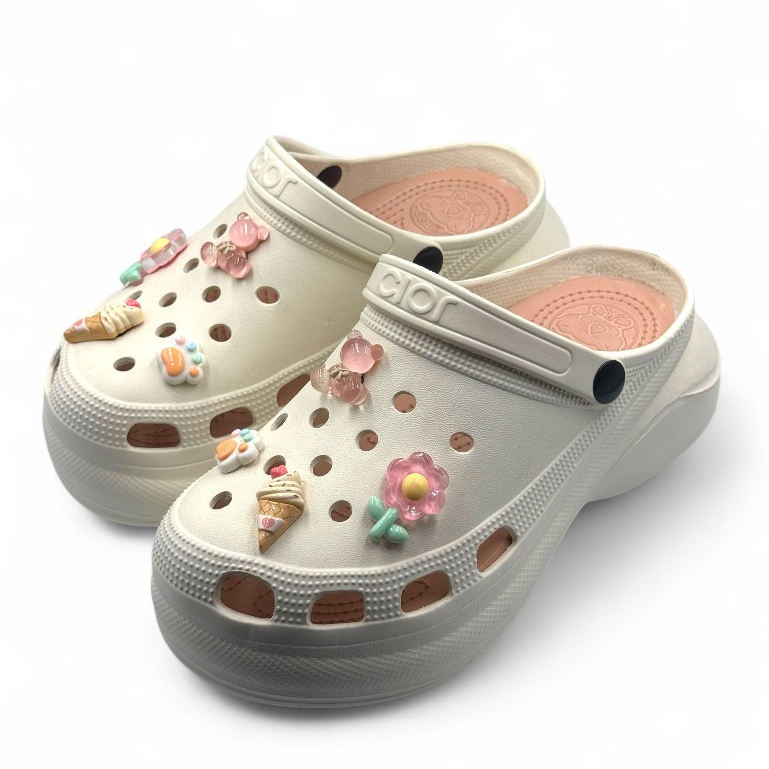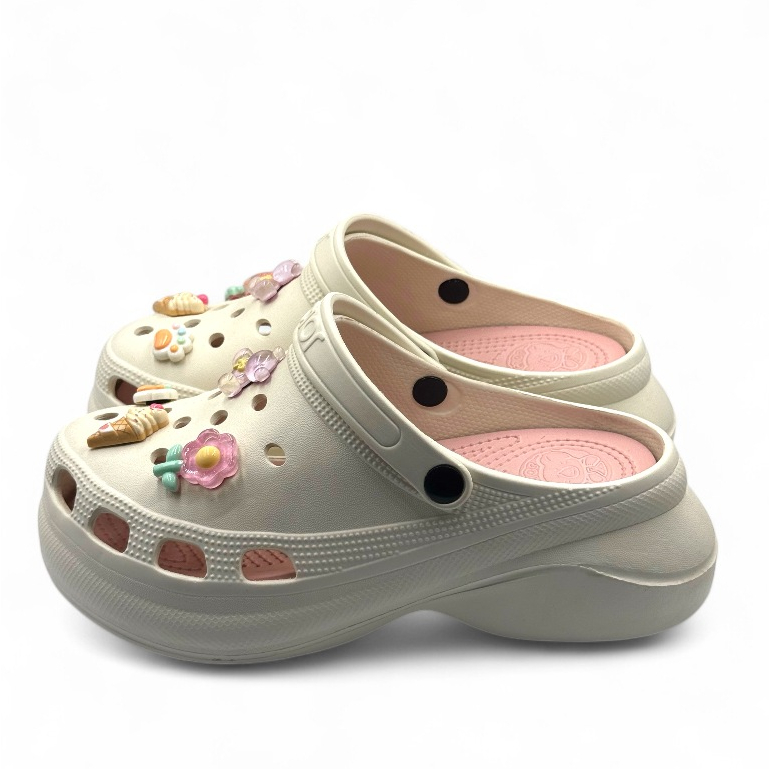 Gpatt : 2-Tone Classy Clogs with 3D Jibbitz รองเท้าสวมผู้หญิงหัวโตแฟชั่น ฟรีสติ๊กเกอร์ติดรองเท้า