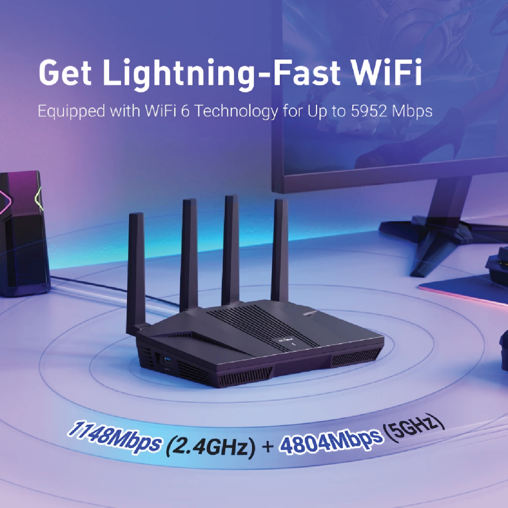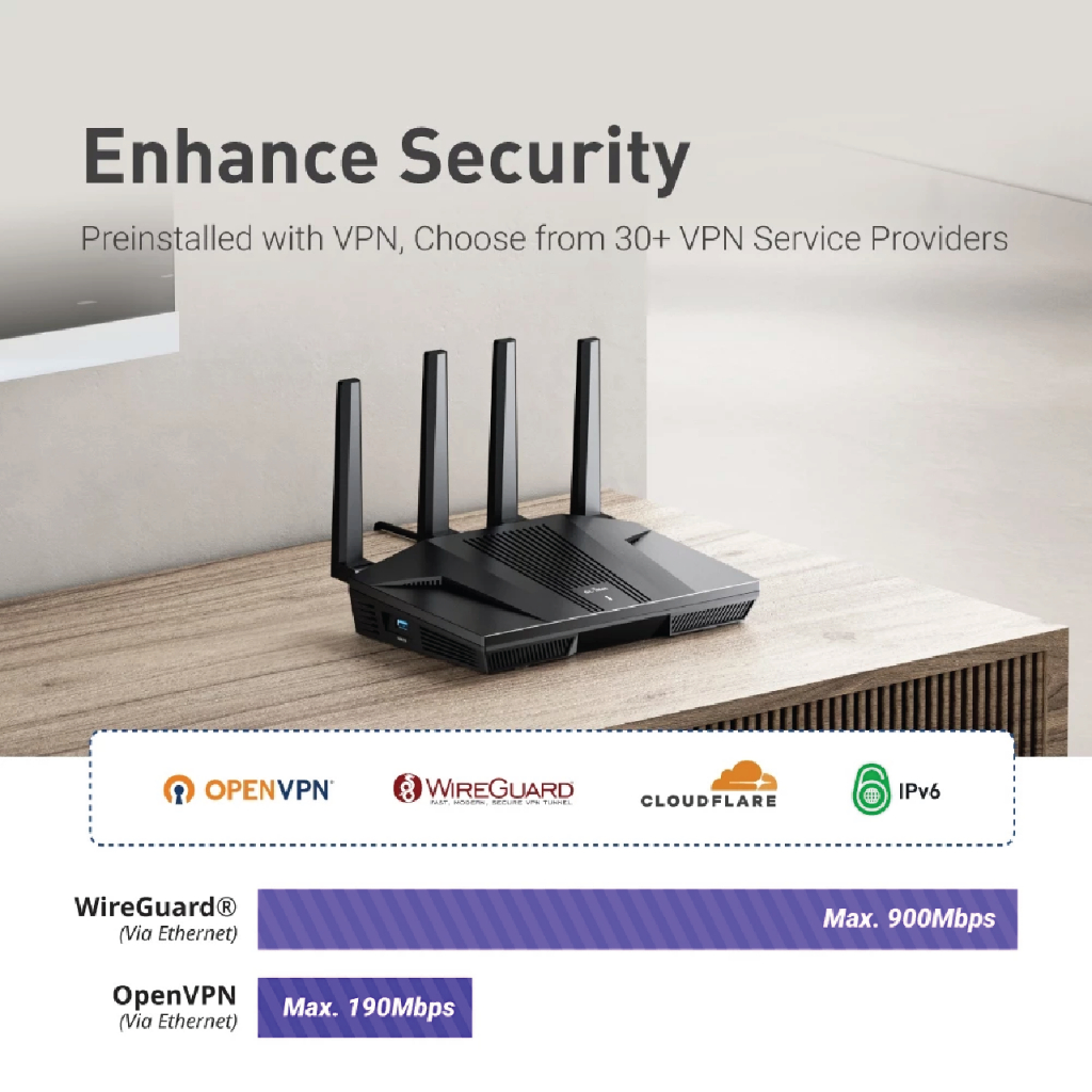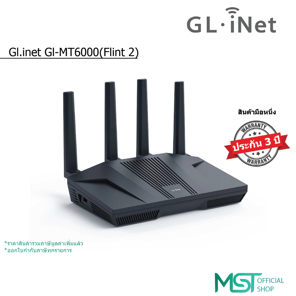 Gl.inet Gl-MT6000(Flint 2) Wi-Fi 6 Multi-Gig 2 X 2.5G +4X1Gเราเตอร์ Wifi[Global Version] ประกัน 3 ปี