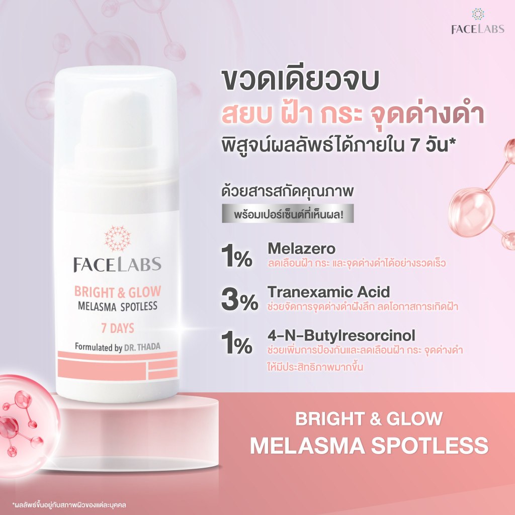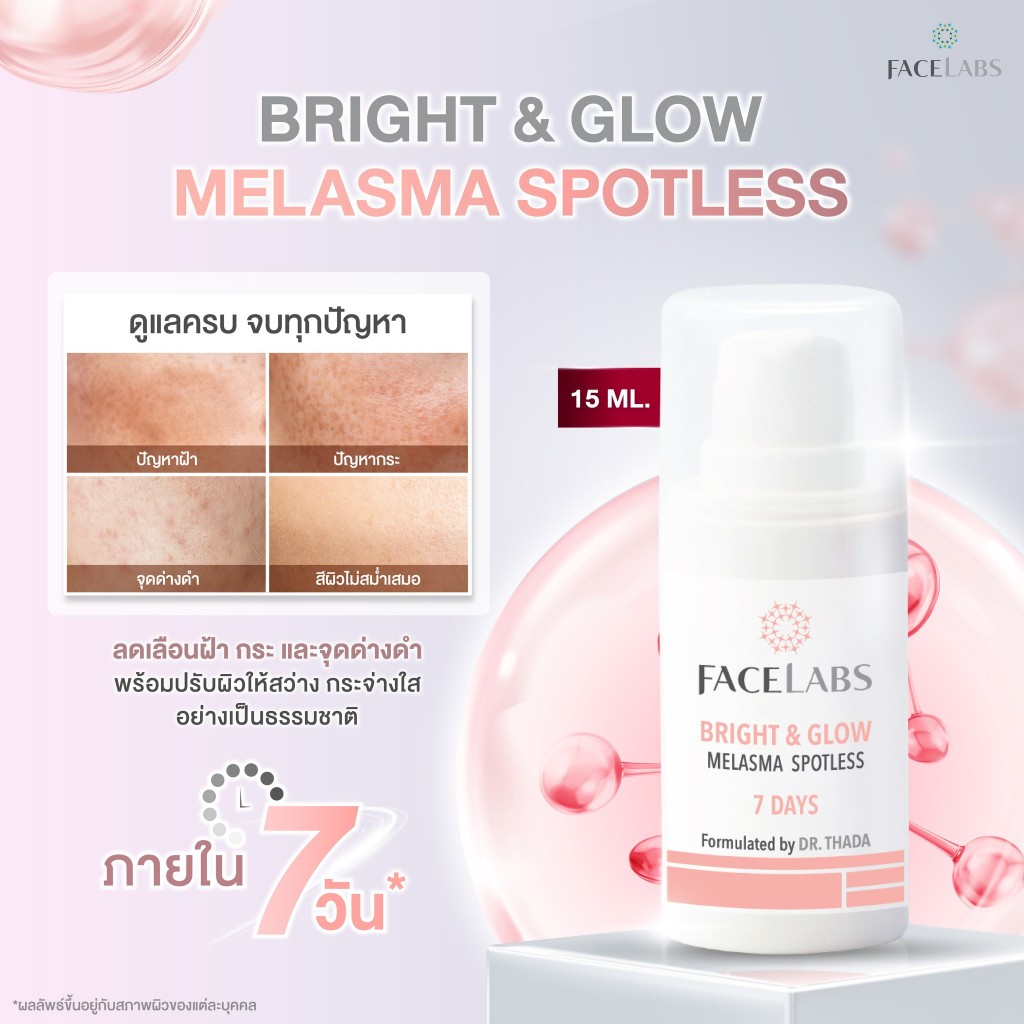 ครีมเจลลดฝ้า กระ จุดด่างดำ ผิวกระจ่างใส สูตรคุณหมอ FACELABS Bright & Glow Melasma Spotless 15 ml เพื่อผิวแพ้ง่าย