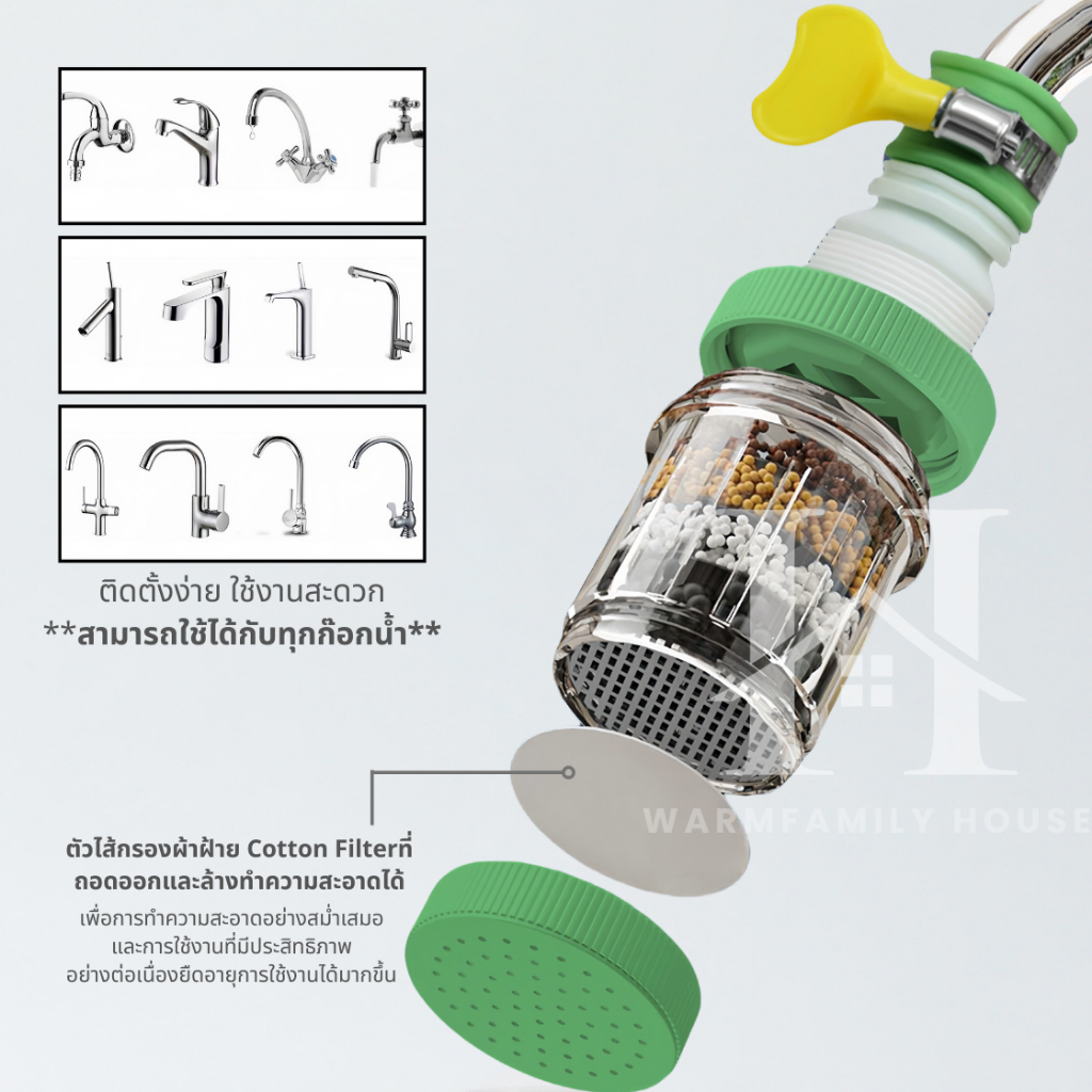(รุ่นใหม่)หัวต่อก๊อกกรองน้ำ หมุนได้ 360°Cชั้นกรอง 6ชั้น กันน้ำกระเด็น หัวกรองก๊อกน้ำ ที่กรองน้ำ หัวกรองน้ำ