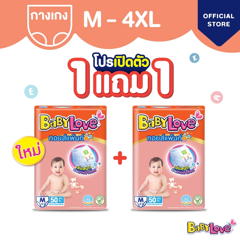 ใหม่! BabyLove Toy Pants กางเกงผ้าอ้อมเด็กเบบี้เลิฟ ทอยส์แพ้นท์ ซื้อ 1 แพ็ค แถม 1 แพ็ค ไซส์ M/L/XL/XXL (2แพ็ค)