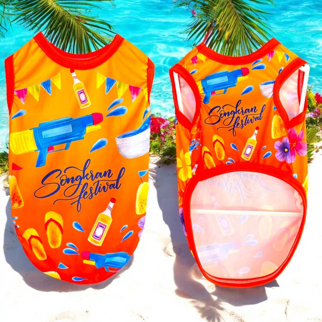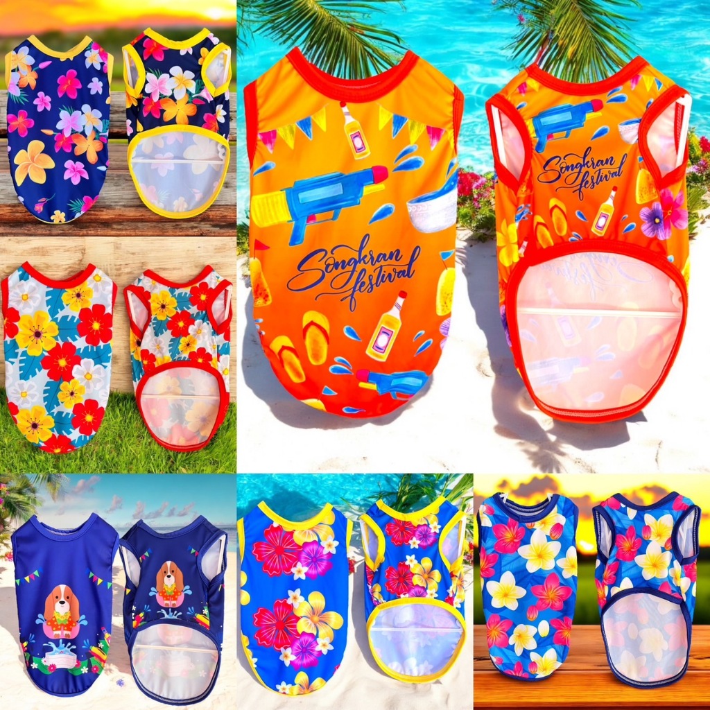 เสื้อแขนกุด หมาแมว ตรีมสงกราต์ สีสันสดใส พร้อมส่ง