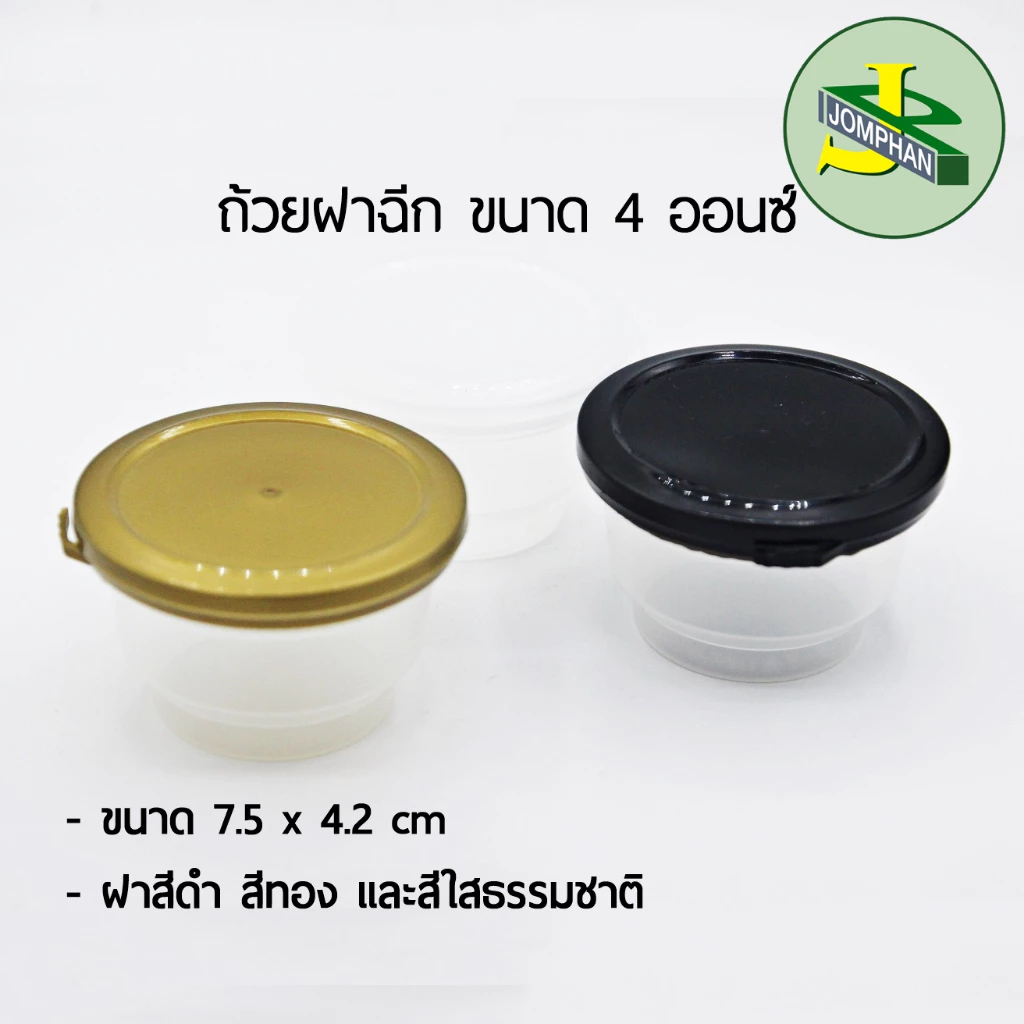 [JOMPS100 ส่วนลด100บาท] Jomphan ถ้วยฝาฉีก 4 ออนซ์ ฝา 3 สี (ใส ทอง ดำ) ไม่หก/รั่วซึม No.201 (ยกลัง 500 ชุด)