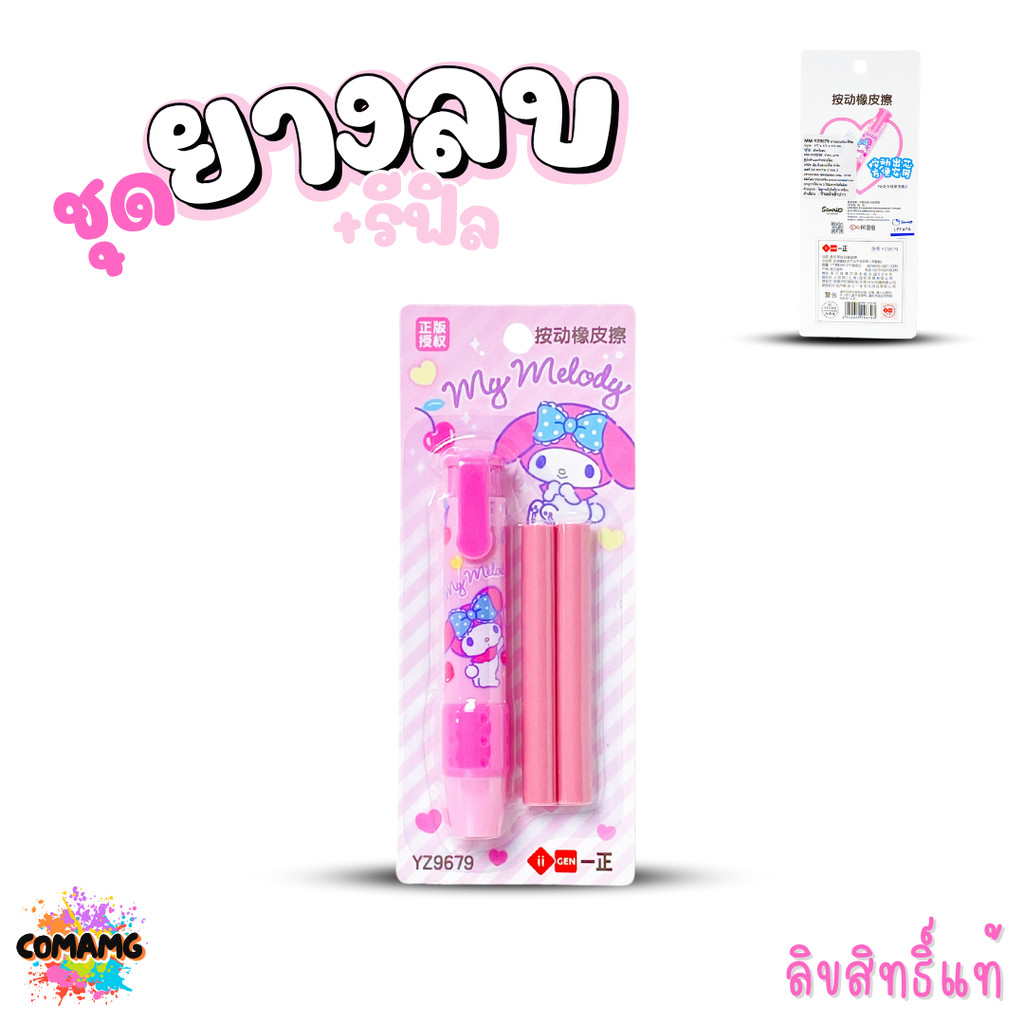 ยางลบแท่ง+พร้อมรีฟิว แบบด้ามกด ทรงดินสอด้ามยาว มียางรองนิ้ว ยางลบดินสอลายคุโรมิ ชินนาม่อน เมโลดี้ ลายการ์ตูน พร้อมส่ง MT