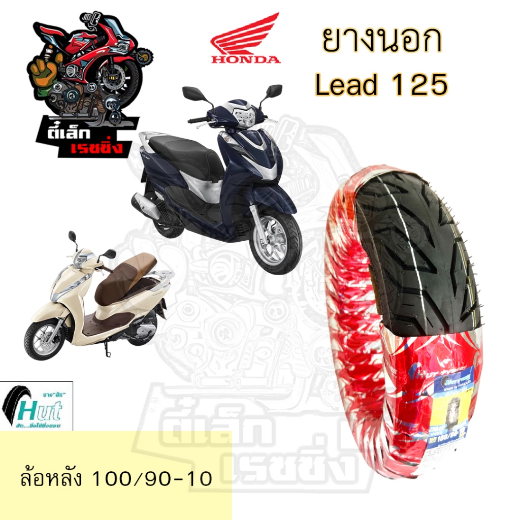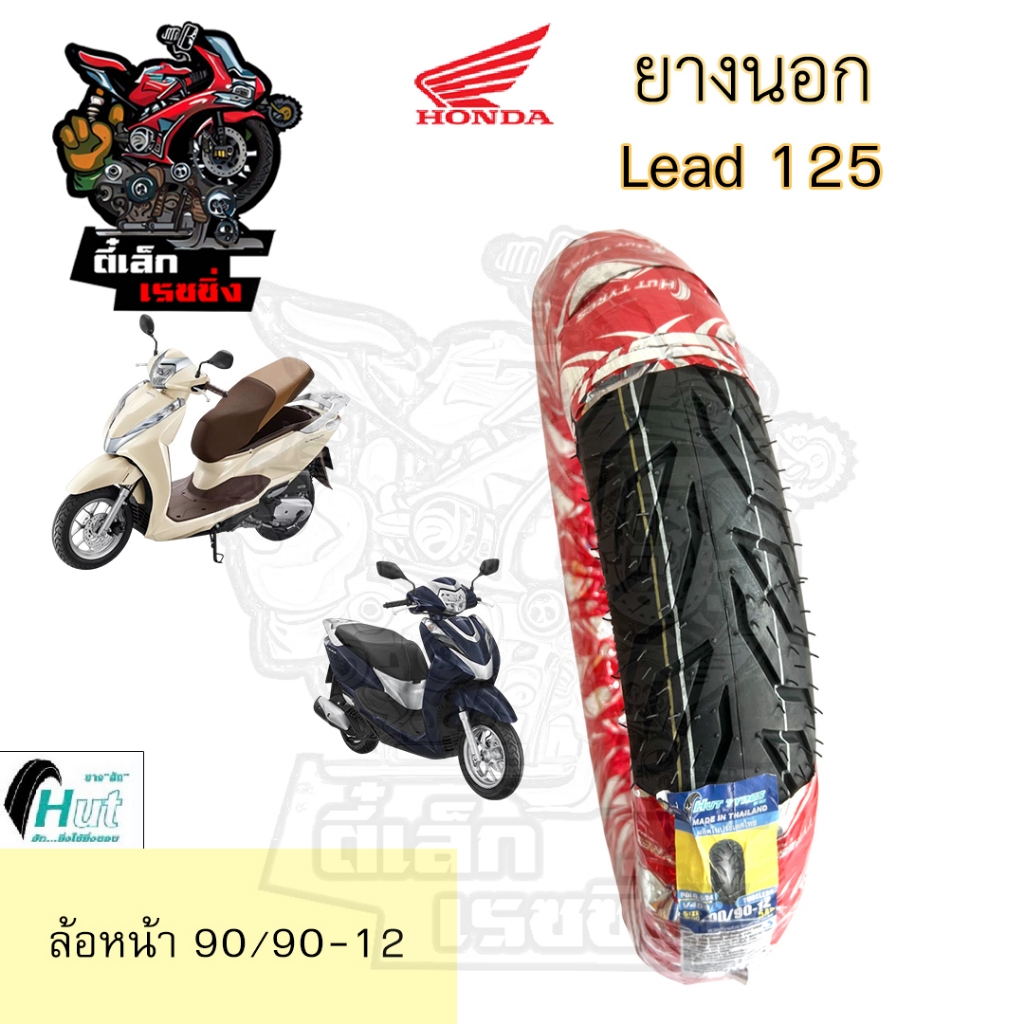 LEAD 125 ยางนอกแบบไม่ใช้ยางใน HONDA LEAD125 Hut แดง H 524 ยางนอก Lead 125 หน้า90/90-12 HUT หลัง100/90-10 ยางนอก หลีด 125