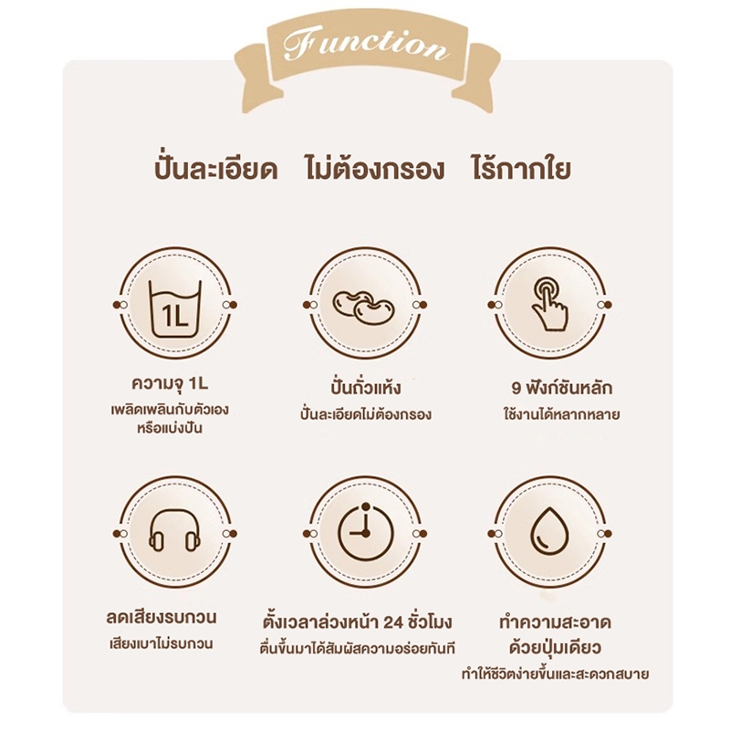 CAMEL เครื่องทำน้ำเต้าหู้ 1000ML เครื่องปั่นน้ำธัญพืช เครื่องทํานมถั่วเหลือง ไม่จําเป็นต้องใช้ตัวกรอง