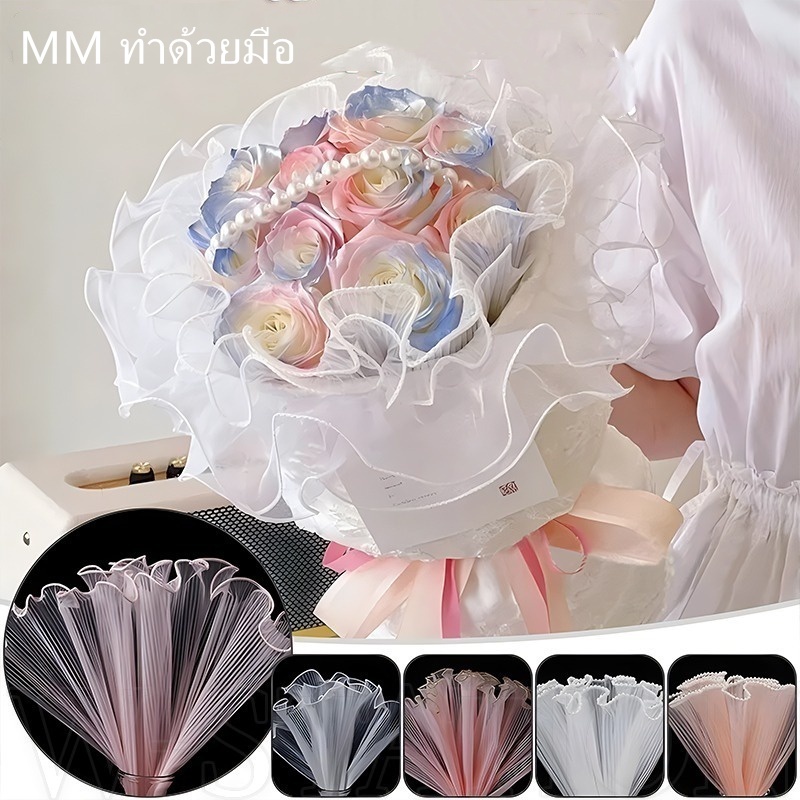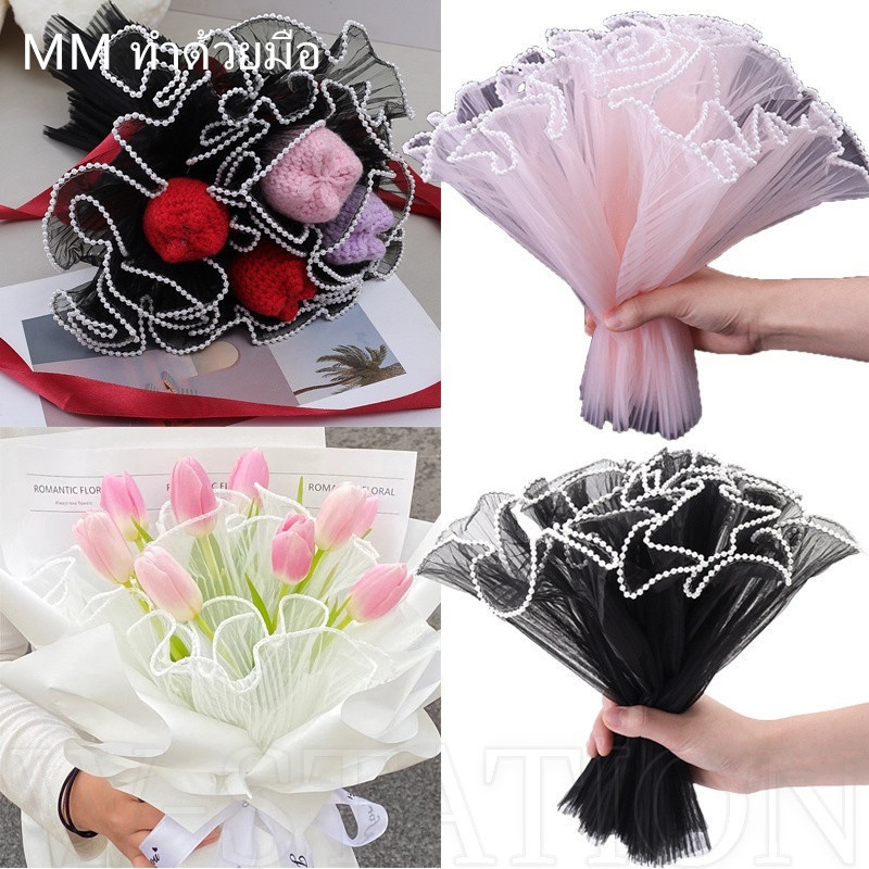 "จัดส่งภายใน 24 ชม. กรุงเทพฯ"กระดาษห่อช่อดอกไม้4เมตร/เส้นด้ายตาข่ายขอบลูกไม้มุก/อุปกรณ์ตกแต่งงานแต่งงาน วันวาเลนไทน์ DIY