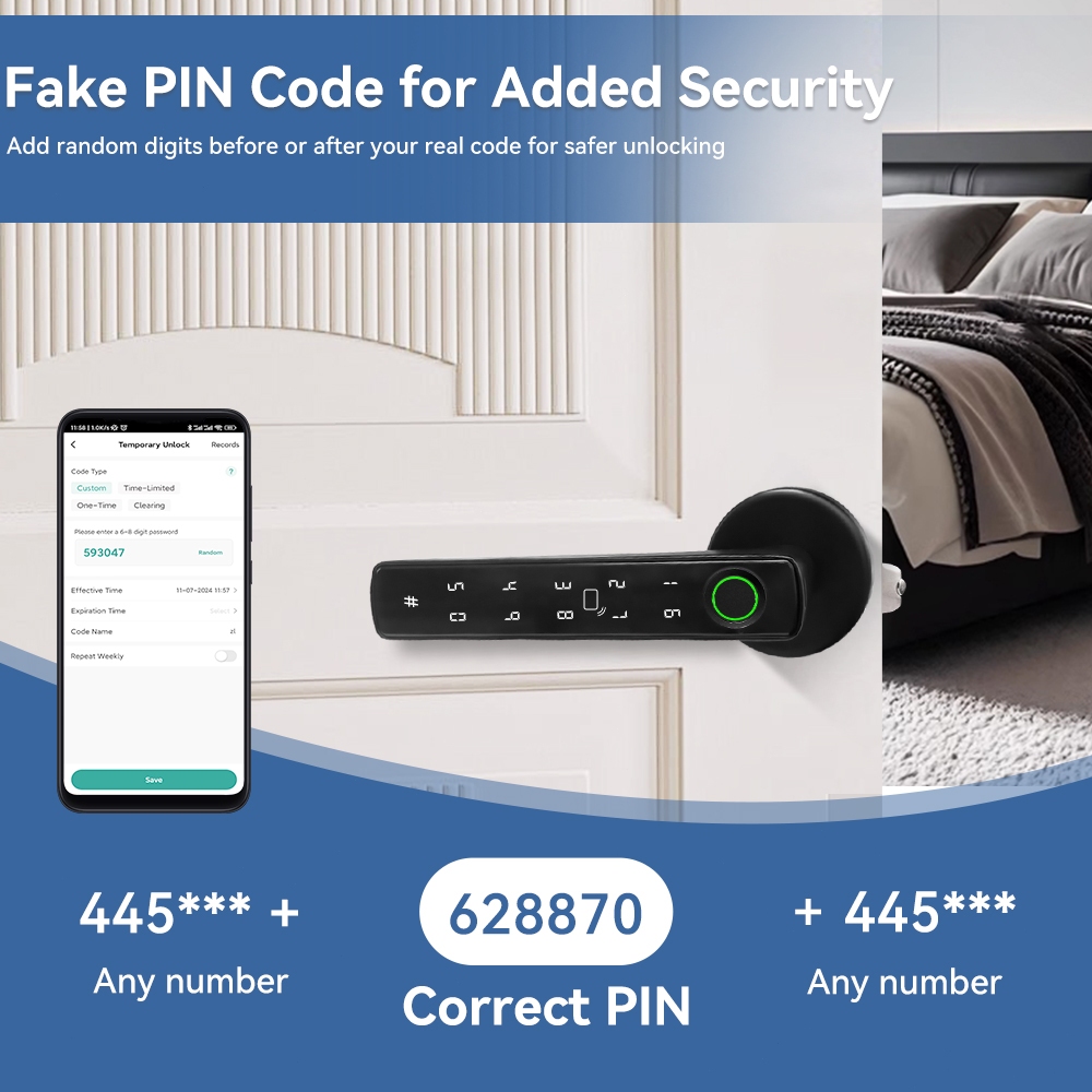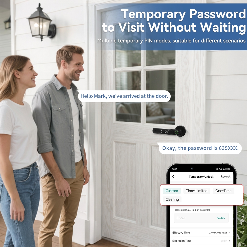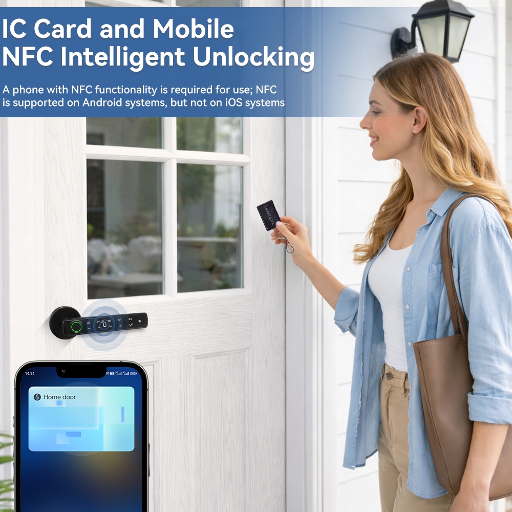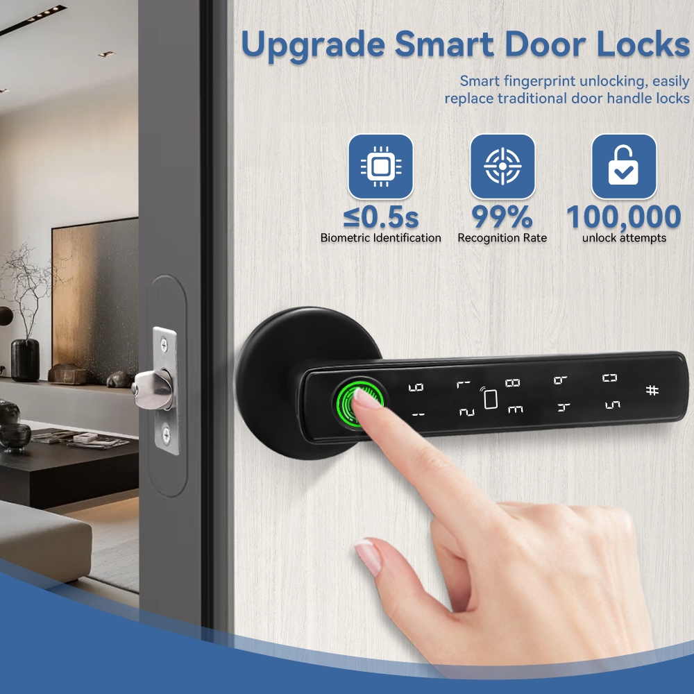 5-in-1 Tuya ลายนิ้วมือประตูล็อครหัสผ่านล็อคกุญแจ IC การ์ด Bluetooth APP ปลดล็อคประตูมือจับเดียวชีวิตสมาร์ท