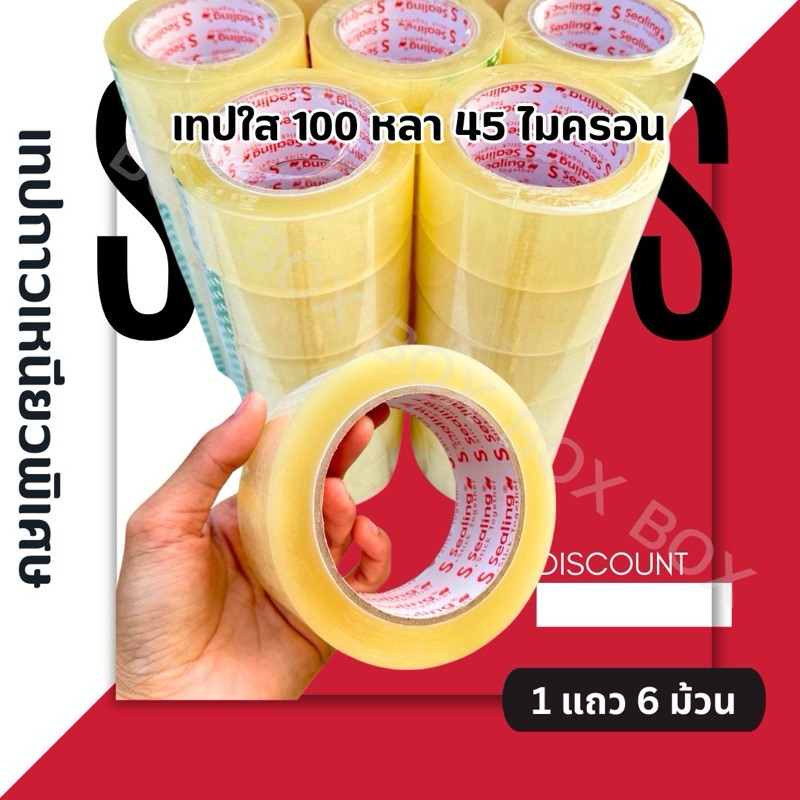 OPP เทปใส/น้ำตาล 45 และ 100 หลา 45 ไมครอน 1 แถว 6 ม้วน