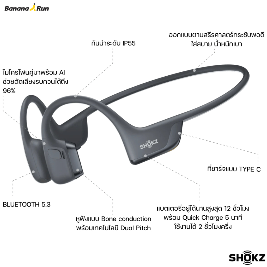 Shokz OpenRun Pro 2 หูฟังไร้สายสำหรับออกกำลังกาย BananaRun รับประกัน 2 ปี