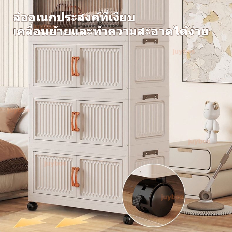 JUYBOS ตู้เสื้อผ้าพับได้ ความจุสูง ทนทาน กันฝุ่นกันน้ำ ติดตั้งง่าย สไตล์โมเดิร์น พร้อมพื้นที่แขวน