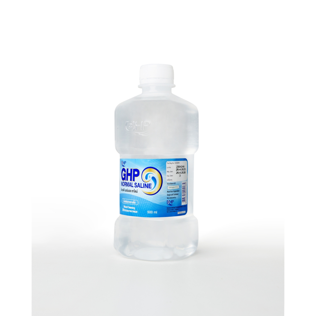 [ยกลัง 20 ขวด ]ขนาด 500 ml.น้ำเกลือ GHP NORMAL SALINE ขวดดัมเบล