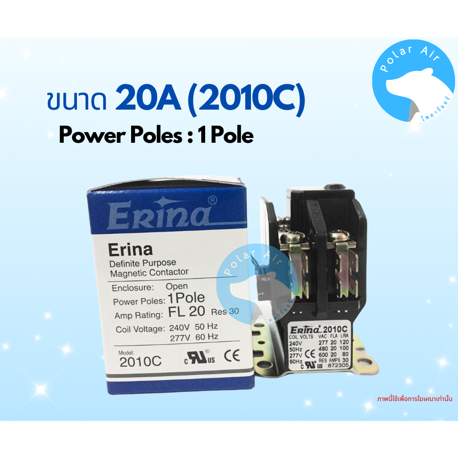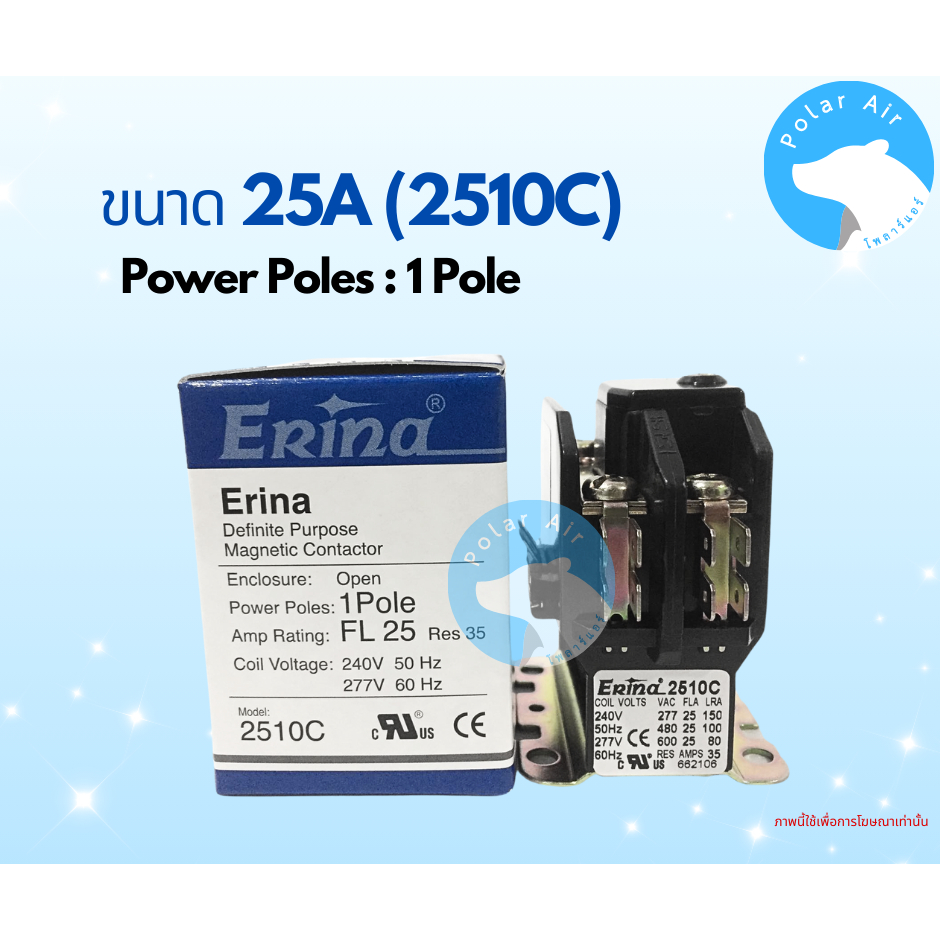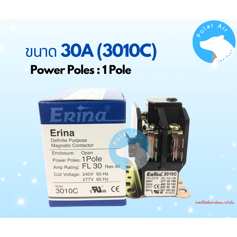 แมกเนติกERINA ขนาด 20A,25A,30A 1ขา ใช้ควบคุมการตัดต่อวงจรไฟฟ้าของระบบเครื่องปรับอากาศ