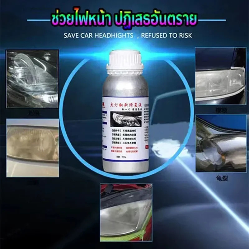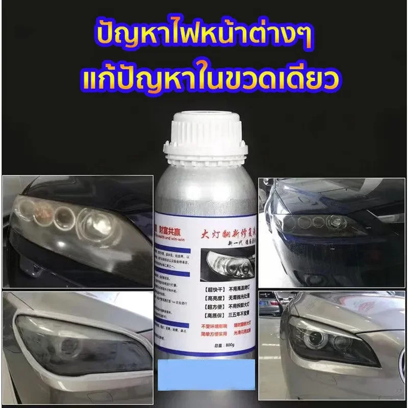 น้ำยาเคลือบไฟหน้า น้ำยาเคลื่อบโคมไฟรถยนต์ ขนาด 800g สูตรเข้มข้น100% น้ำยาขัดไฟหน้ารถ ขัดเคลือบไฟหน้า