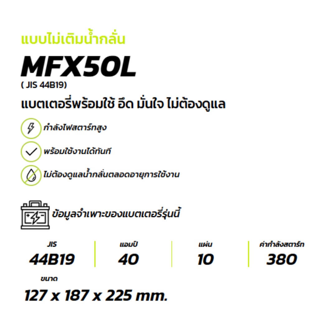 (ส่งด่วน) แบตเตอรี่รถยนต์ GS MFX50L (44B19L) 40Ah | เหมาะกับ Jazz City Mirage | รับประกัน 1 ปี