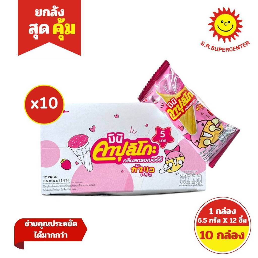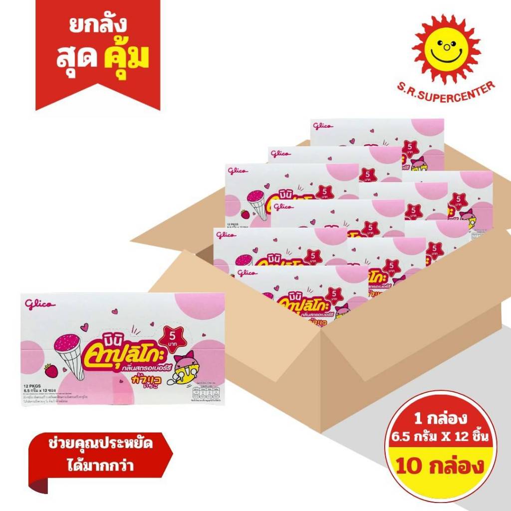 [ ยกลัง ] Glico มินิ คาปุลิโกะ กลิ่นสตรอเบอร์รี่, ช็อกโกแลต ขนาด 6.5 กรัม x12 ซอง ( ยกลัง10กล่อง )