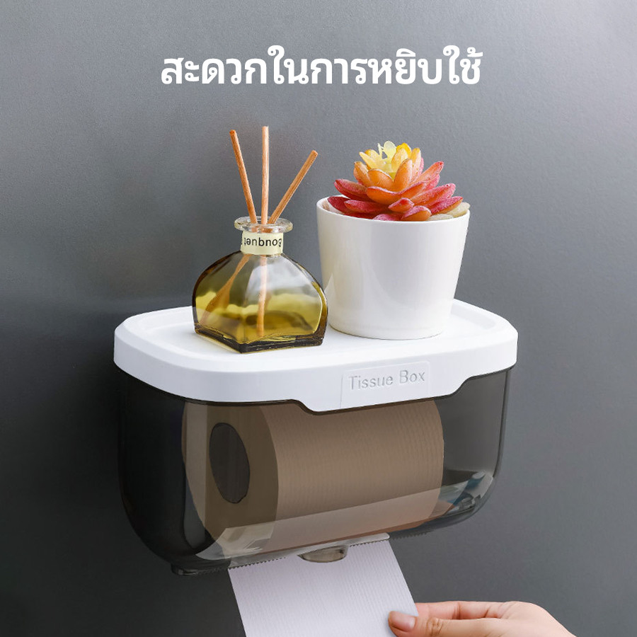 กล่องใส่ทิชชู่กันน้ำ กล่องใส่กระดาษทิชชู่ ไม่ต้องเจาะผนังด้วยสติ๊กเกอร์กาว แรงยึดสูง ติดตั้งง่าย ทนทาน ไม่หลุดง่าย