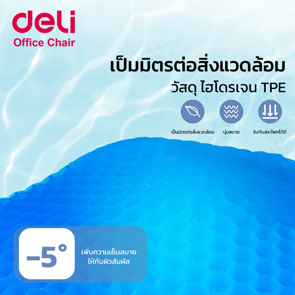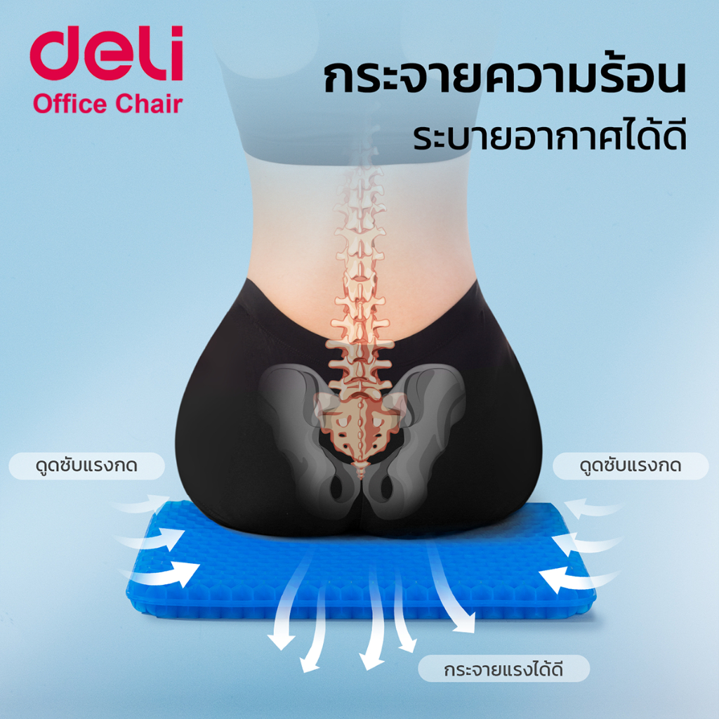 [ฟรีปลอกผ้า] Deli เบาะเจลรองนั่ง เบาะเจลรังผึ้ง รองนั่งเพื่อสุขภาพ ยืดหยุ่นได้ ลดอาการปวดก้น Cushion
