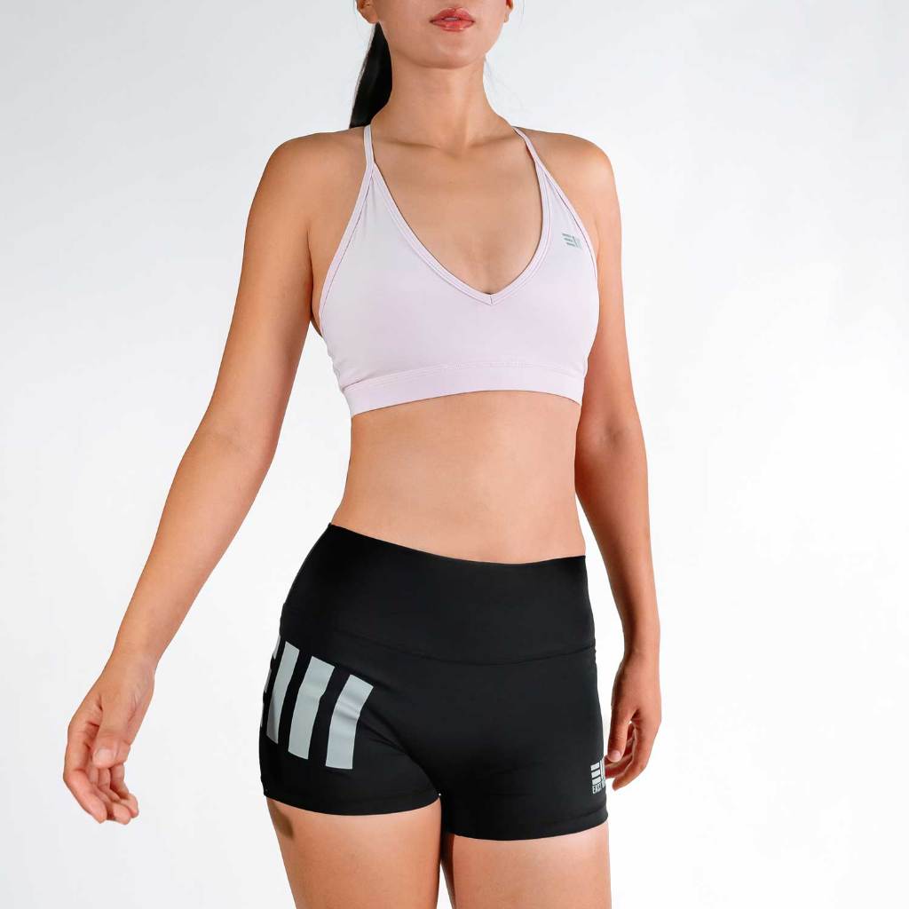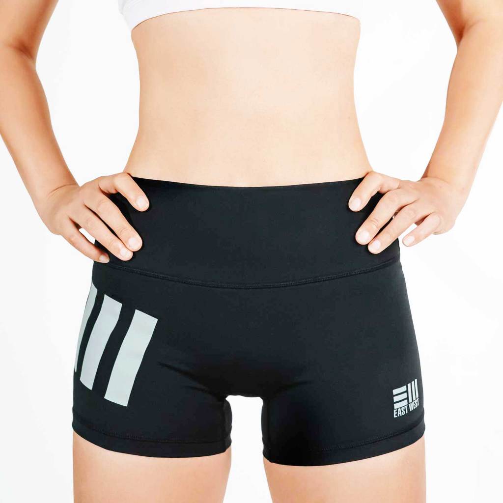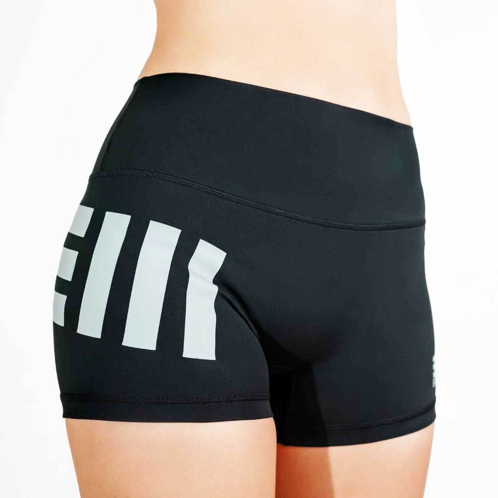 East West EveryWear กางเกงออกกำลังกายขาสั้นผู้หญิง SEAMLESS BUTT HUGGERS - BLACK GRAY SHORT 2.5 นิ้ว เอวสูง