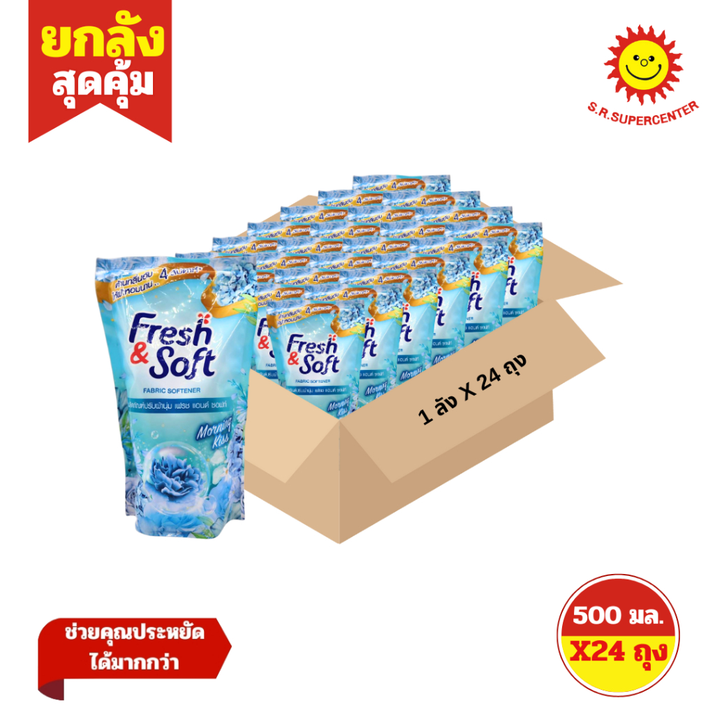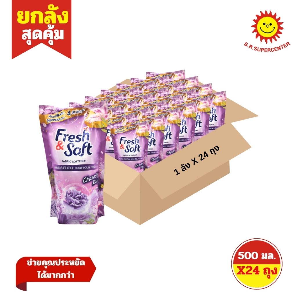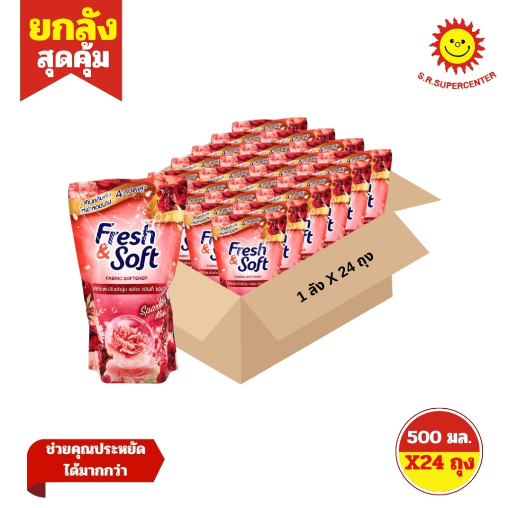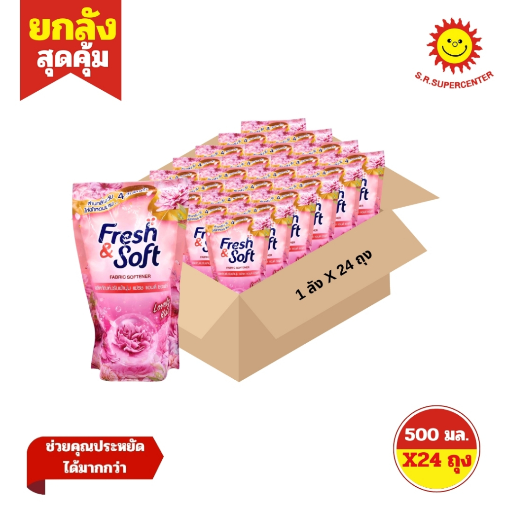 [ ยกลัง ] Fresh&Soft เฟรชแอนด์ซอฟท์ ผลิตภัณฑ์ปรับผ้านุ่ม ขนาด 500 มล. (ยกลัง24ถุง) 4กลิ่น
