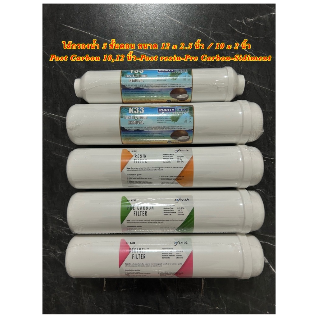ไส้กรองน้ำ 5 ขั้นตอน Post Carbon/Resin/Sedimet/GAC Inline 12 นิ้ว โพสต์คาร์บอน ตู้กดน้ำหยอดเหรียญและเครื่องกรองน้ำ Safe
