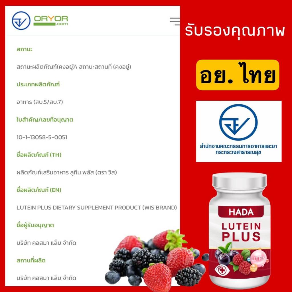 HADA ลูทีน พลัส สำหรับดวงตา ของแท้100% (2แถม3)