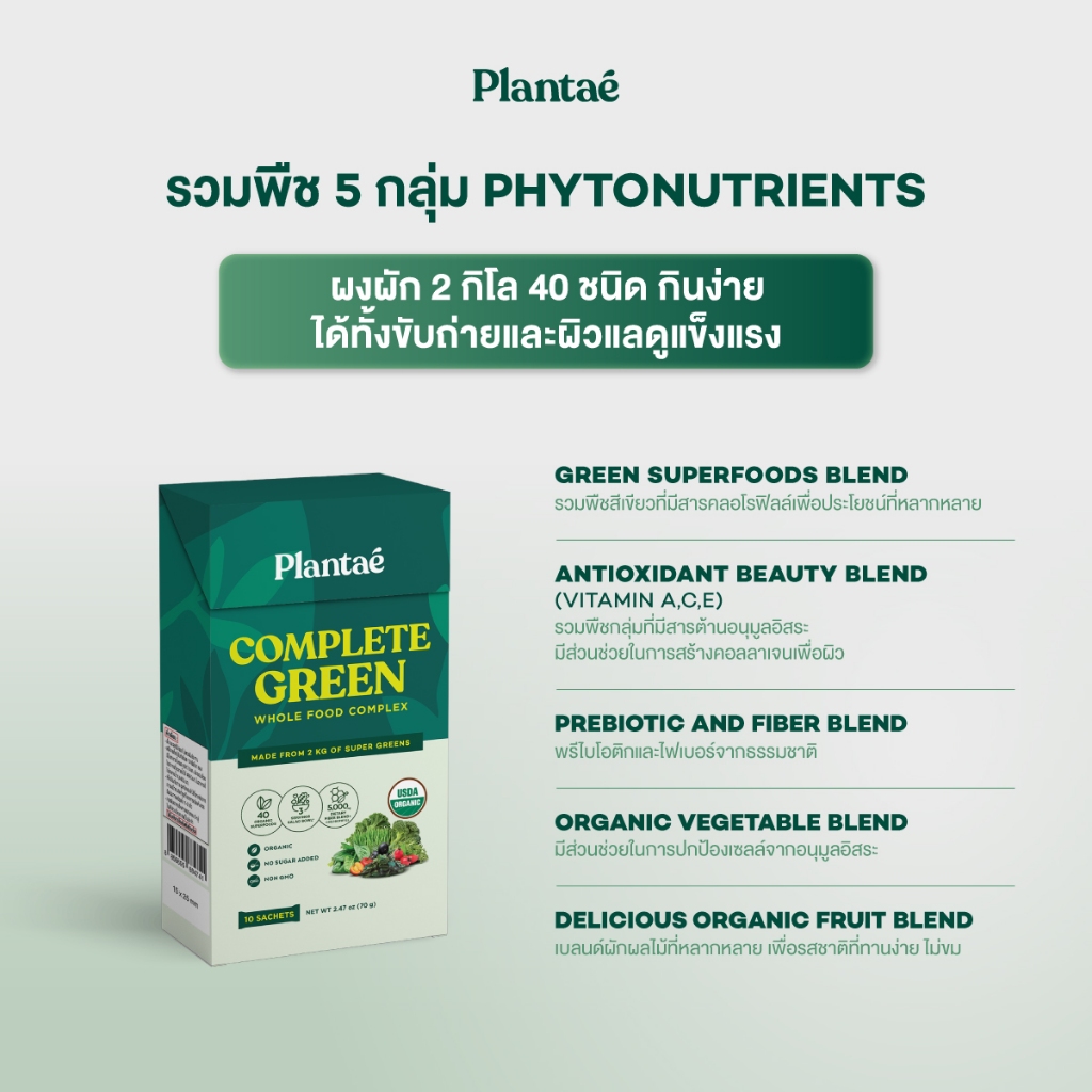 Plantae Whole Food Complex : Complete Green แบบกล่อง 10 ซอง ผงผักและผลไม้ ไฟเบอร์ สลัด กินง่าย ไม่เหม็นเขียว