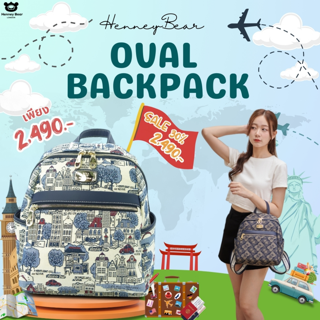 Henneybear-H1172รุ่นOvalBPลายEuroCityกระเป๋าเป้ทรงสวยใส่ของจุใจกระเป๋าเดินทางแบบใหม่ฟังก์ชั่นครบCOD