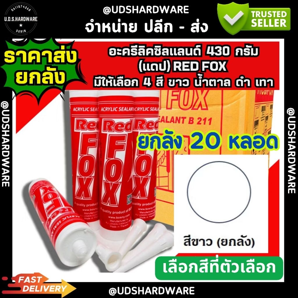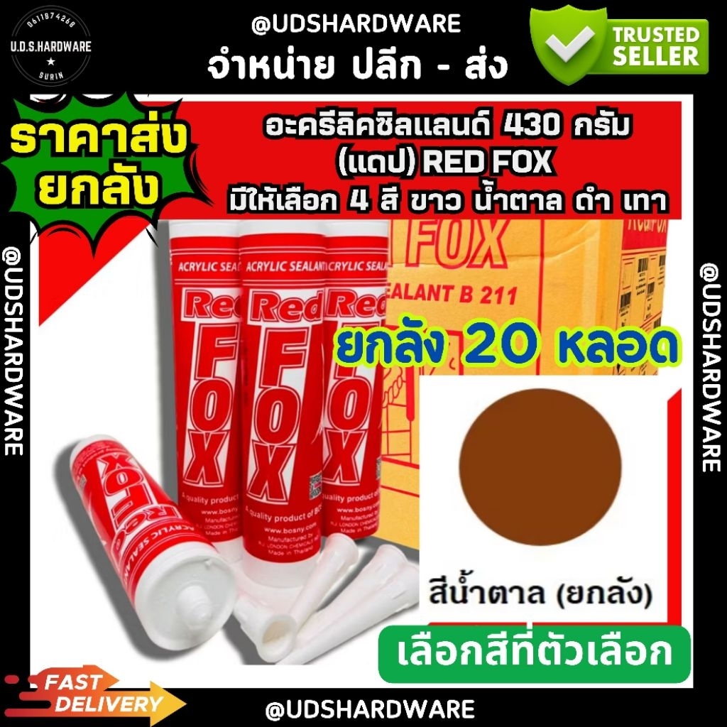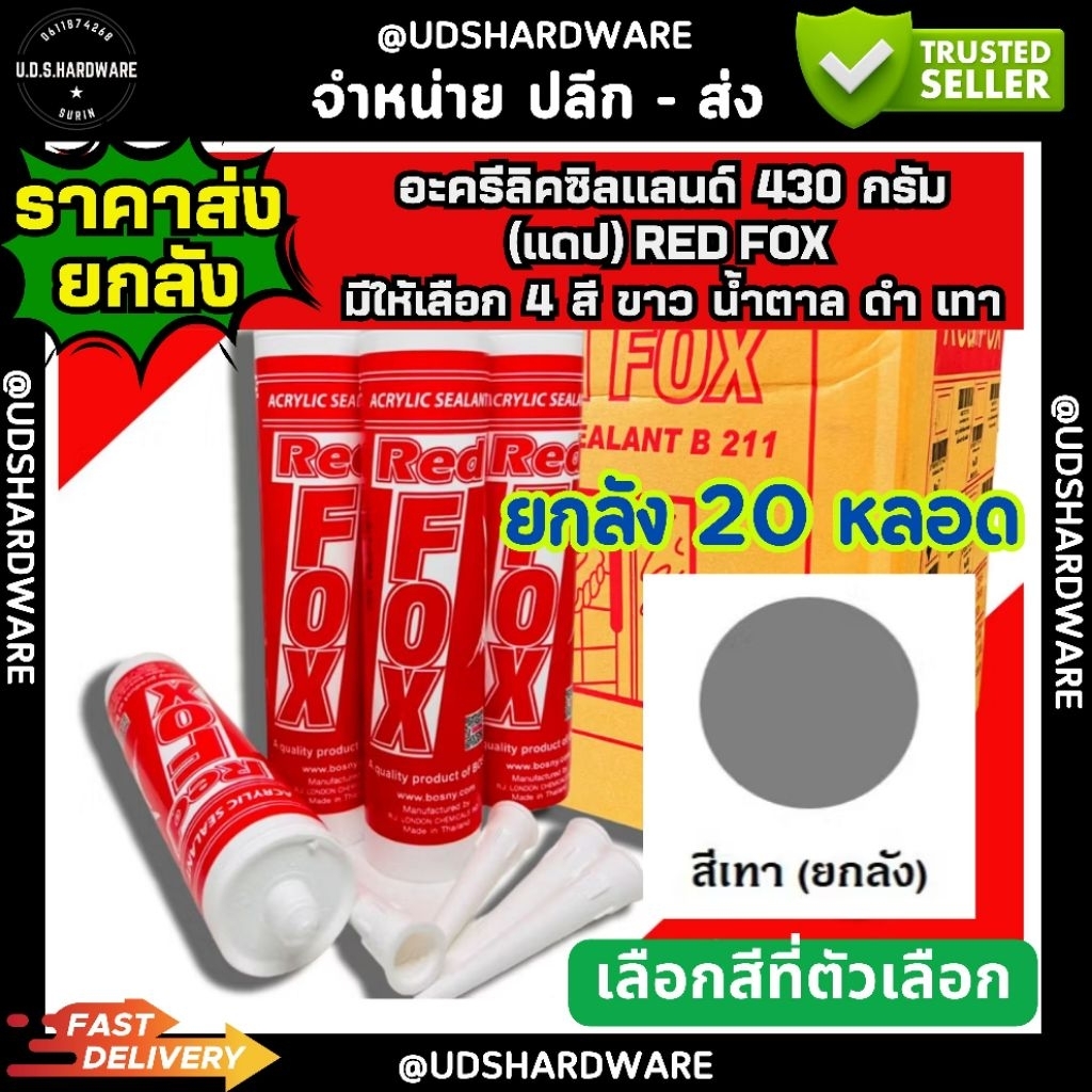 (ราคา/ลัง20หลอด) อะครีลิคซิลแลนท์ Redfox 430 กรัม อะคลิลิค สีขาว เทา ดำ น้ำตาล ขายส่งอะคริลิค ขายส่งซิลิโคน