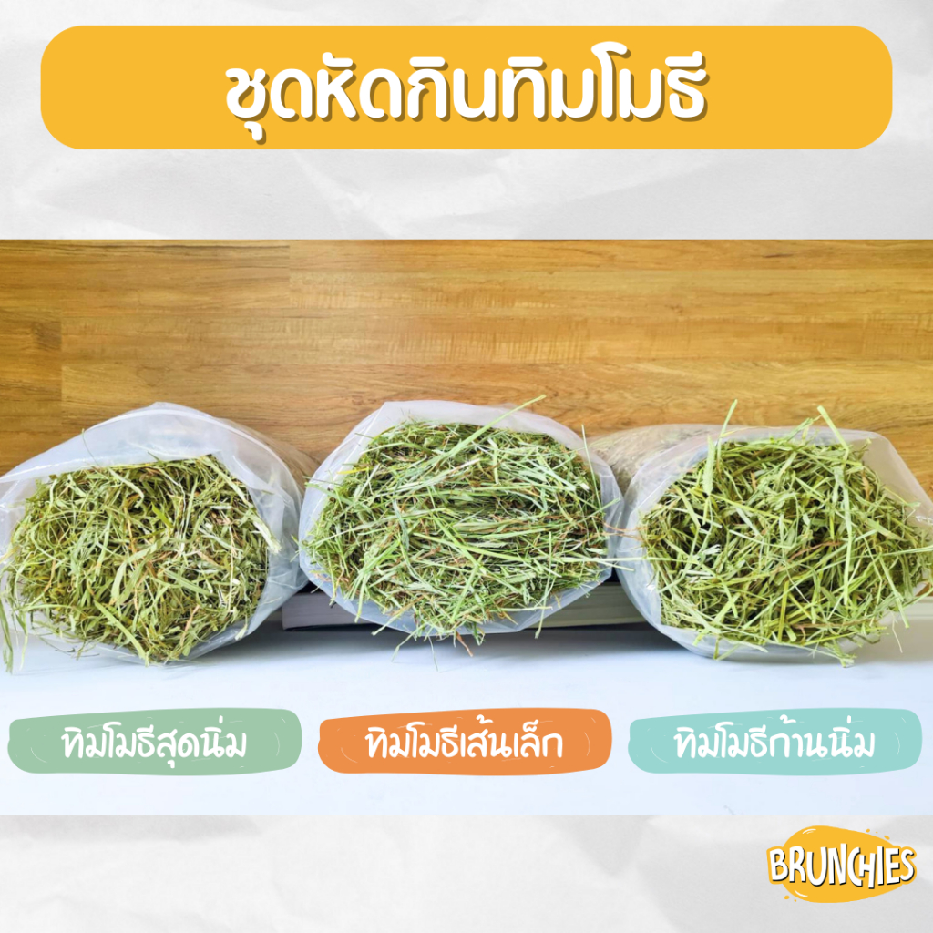Brunchies หญ้าทิมโมธีอย่างดีร่อนฝุ่น (1kg) พรีเมียม ใหม่สุด เขียว หอม กินง่าย ดอกเยอะ ลับฟันดี