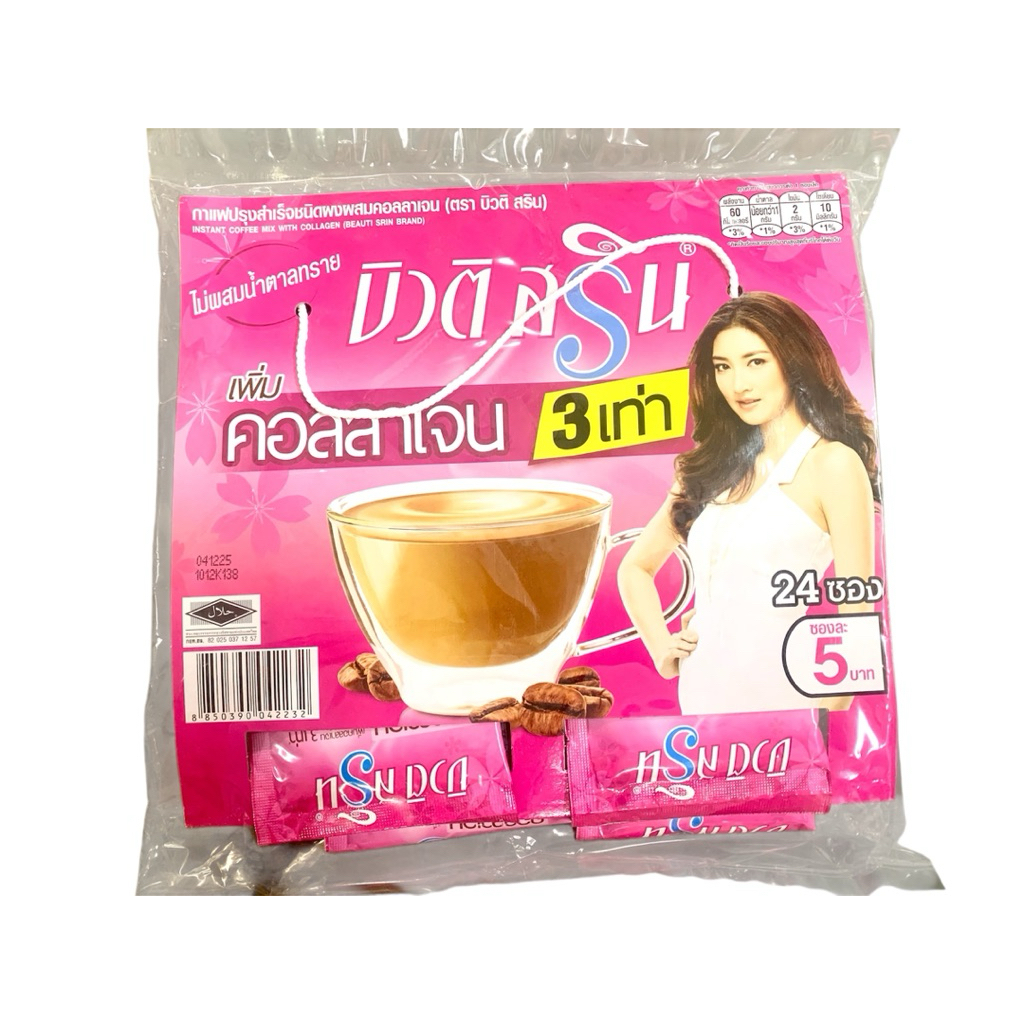 บิวติ สริน กาแฟปรุงสำเร็จชนิดผงผสมคอลลาเจน ซองละ 12 กรัม บรรจุ 24 ซอง
